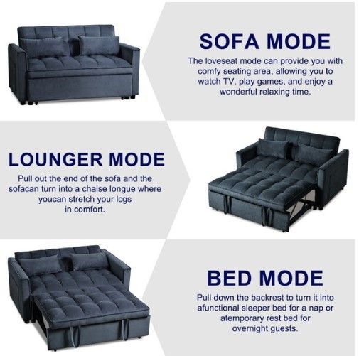 VenmoNew - 3 in 1 Convertible Sleeper Sofa Bed, Velvet, Adjustable Backrest, with Pillows and Pockets, Black. Still in the Box!