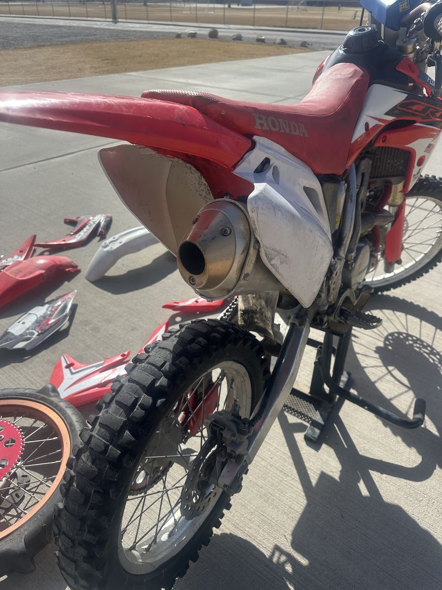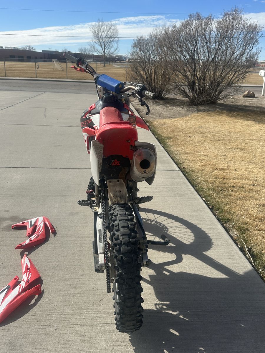 Venmo2007 Honda CRF150RB Big Wheel! This bike starts and runs great! It has a lot of aftermarket parts! FMF Power Bomb Head Pipe, Scott’s Triple Clamp, Pro Taper bars, Factory Connection Suspension, New Sprocket for both the Dirt Tire wheel and Sand Paddle wheel, lots of extra plastics pieces, New Front Tire, Tusk Radiator Hoses, Tusk Shifter. Has been a really good bike and has treated us well! Selling to get a Surron or Talaria. Possibly willing to trade for your e-bike depending on what it is.