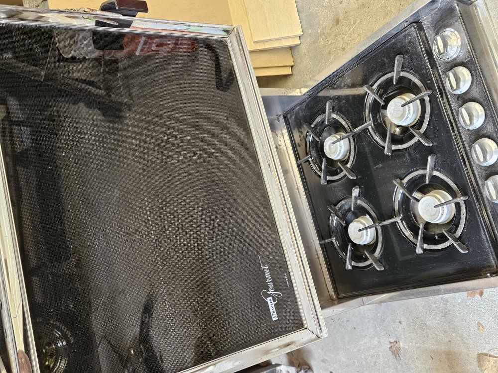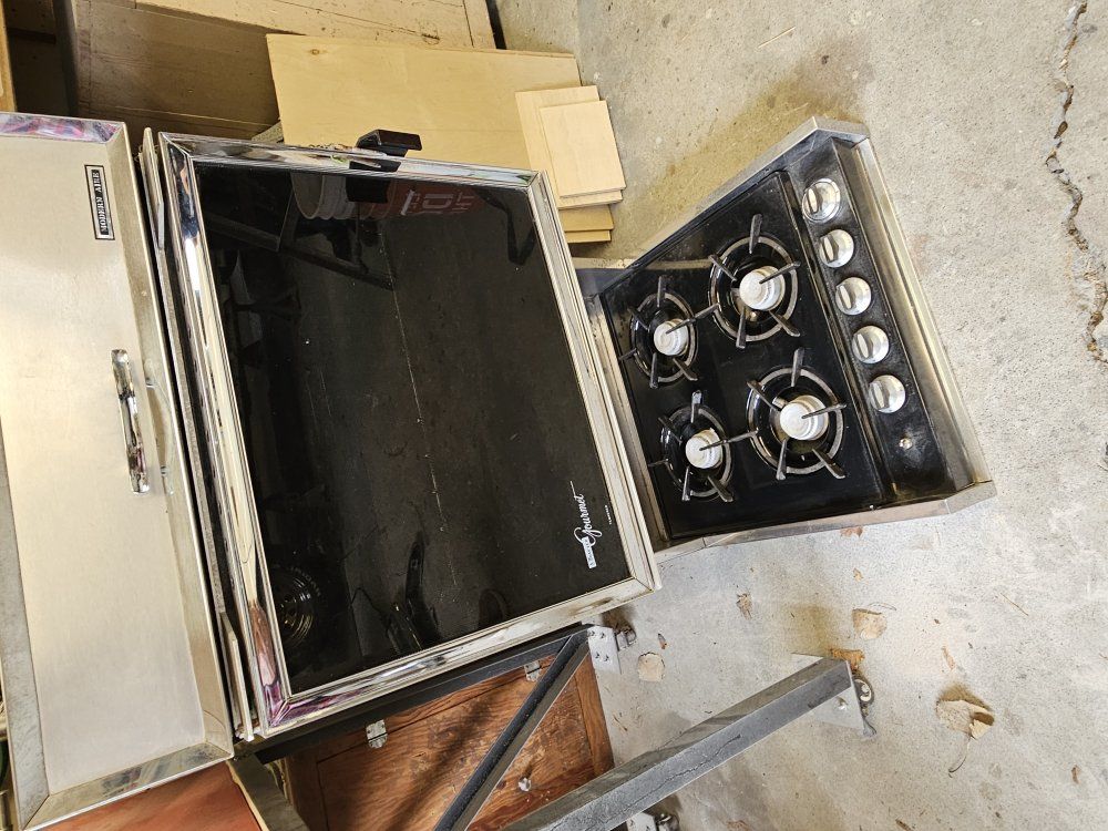 propane 4 burner stove with oven and exhaust fan.