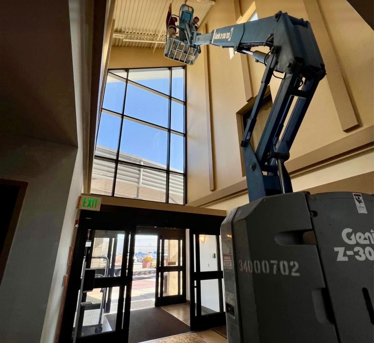 The 30' articulating manlift is a quiet, emission-free electric lift perfect for confined work spaces. Being only 47 wide, allows the lift to easily roll through standard double doorways.