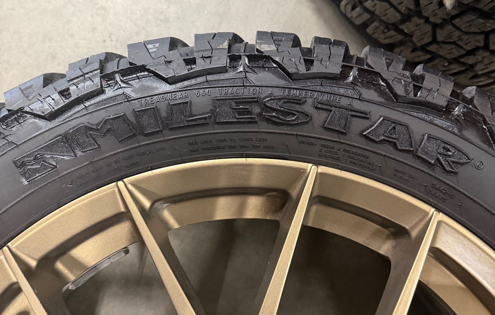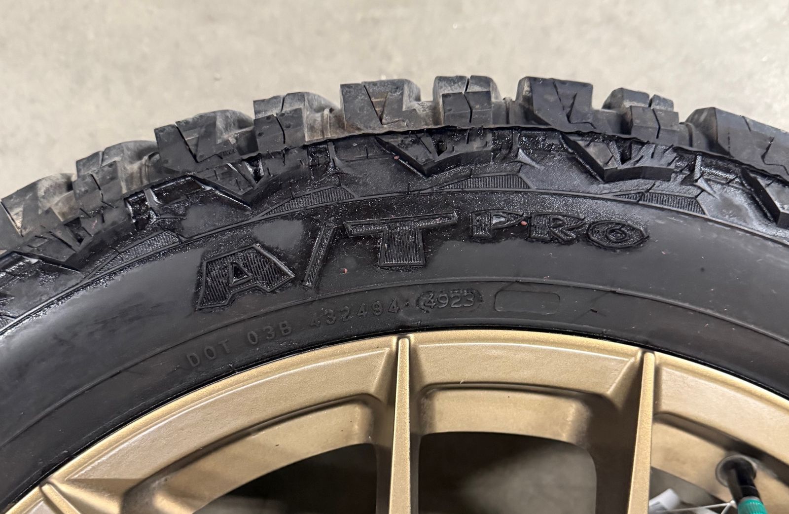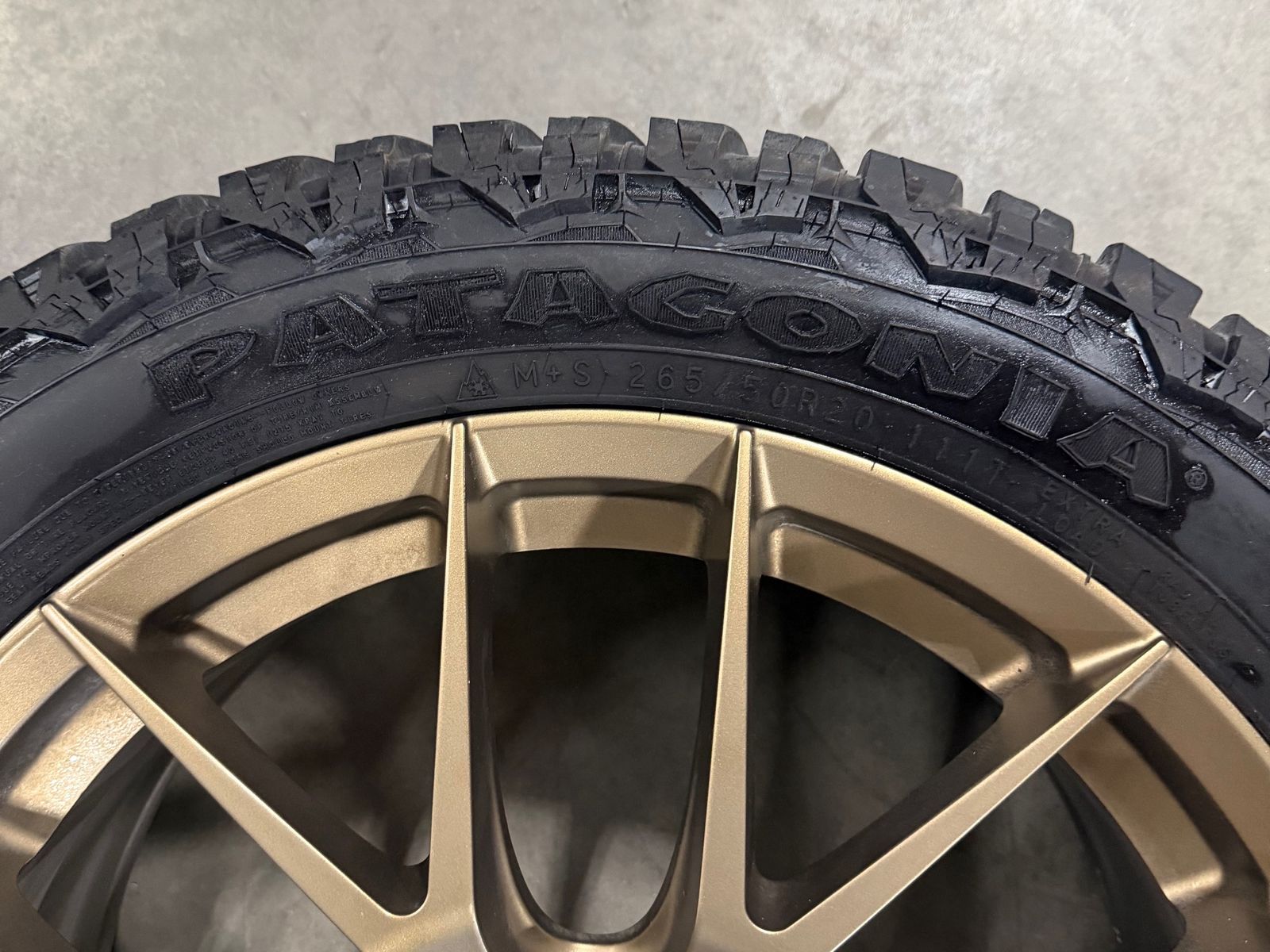 GooglePaySet of 4 20" Fittipaldi FS360 in Satin Bronze. 5x114.3 or 5x4.5 bolt pattern. 38mm Offset. Hub bore 73.1. Includes Patagonia Milestar A/T Pro tires. 265/50R20 111T with 14/32 tread. These came off of a 2024 Santa Fe. Call 801-265-9800 Mon-Fri 8:30am-5:30pm