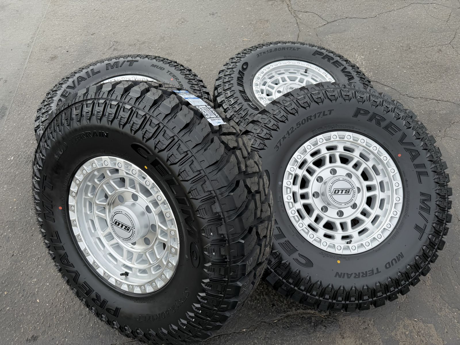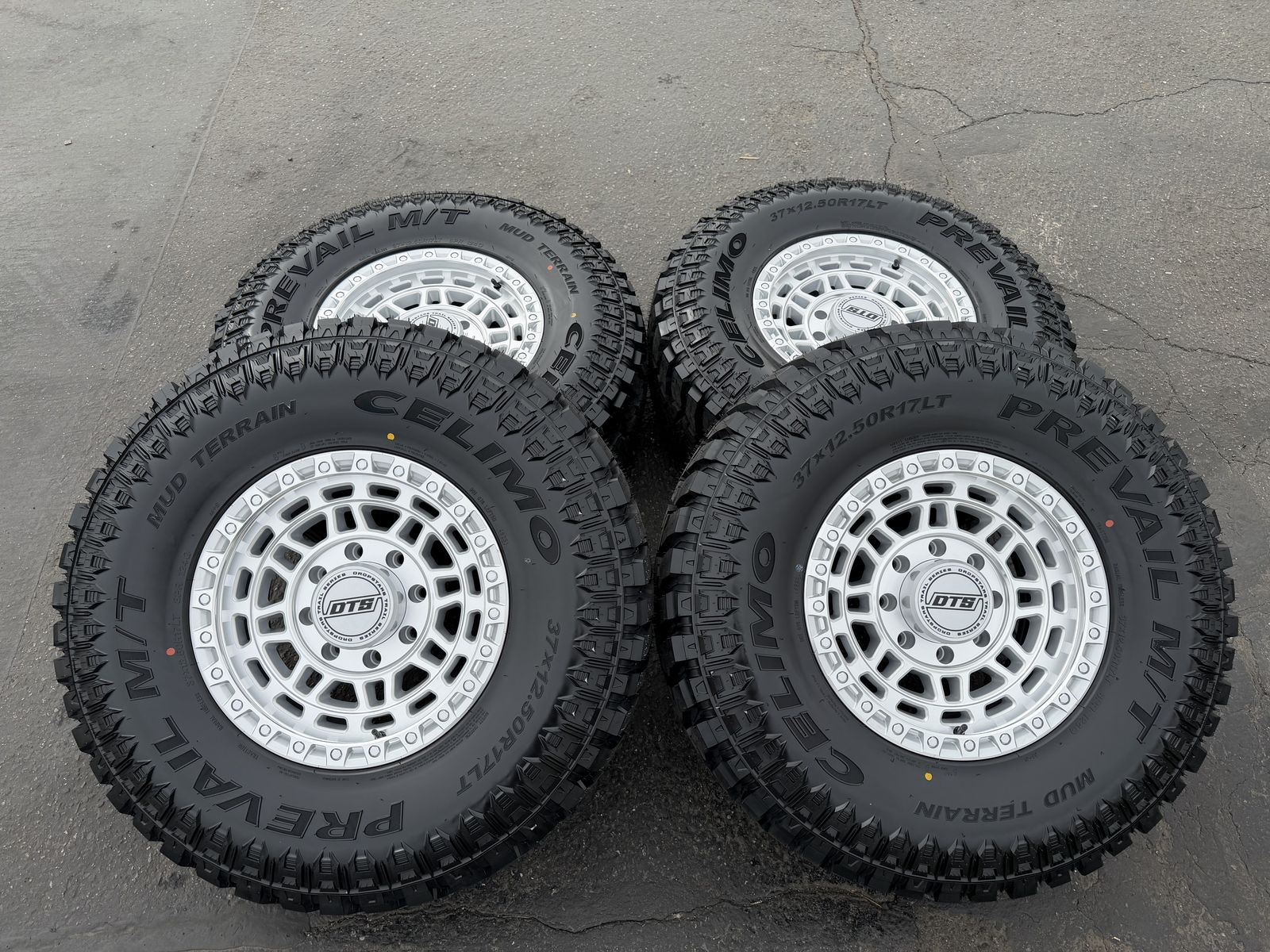 Tires are Celimo Prevail M/T 37x12.50x17 8 ply Load Range D 124 load rating