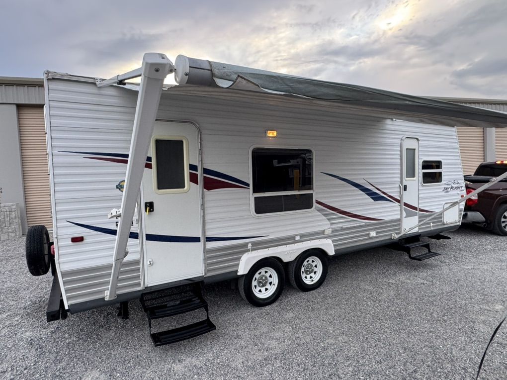 VenmoMint condition Jayco Jay-flight 25RKS With electric slide out. One owner 28 F in length Exceptional condition inside and out. Has been kept covered mist of the time since new. Body and decals are still on awsome condition- lightweight at only 4700 pounds Nice electric slide out Well insulated sealed underbelly Has a very open layout with private quarters in the font separate from rear living room. Bathroom is roomy and located in the middle Two access entry doors one for master bedrooms and one in rear for living room is so convenient Roof is in great condition- never any leaks ever. Just had the roof lifetime warranty roof repair protected professionally nearly 2k so typical maintinence won’t be needed for many years, Tons of storage inside with extra storage under the queen & huge front pass through compartment double wide closet No pets or smoking Outside shower Outside propane hookup dual bigger 7.5G tanks Newer heavy ply tires and spare Trailer cover Equilizer hitch setup New Solar setup for off grid capability Brand new Interstate deep cycle battery just purchased. Fully gone through, Everything works great and has been fully tested 567b. Must see. $9995 obo