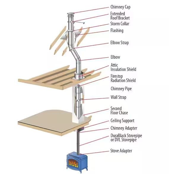 About This Product The DuraPlus system from Duravent is designed to stay cool on the outside, provide a hot draft on the inside and boost stove efficiency, offering a fire-safe design that protects both the chimney and building. This Triple-Wall Chimney Stove Pipe features 2-insulating layers consisting of a ceramic blanket plus air space. The ceramic blanket insulation is held securely in position, eliminating hot spots common with loose-fill type insulations. In the event of a creosote fire, the compressible blanket insulation permits the chimney liner to expand outwardly in a radial direction. Designed for normal, continuous operation at 1000°F flue gas temperatures, DuraPlus is subjected to rigorous and stringent HT requirements of the UL standard, including 1-hour at 1400°F, plus three 10-minute chimney fire tests at 2100°F.