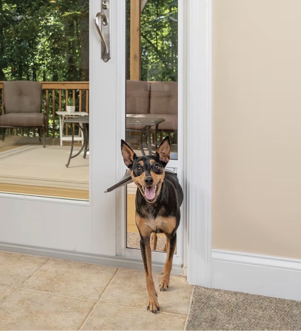 VenmoThis doggy door is brand new, in perfect condition, height adjustable (75-80inches), and easy to install in any sliding patio door.