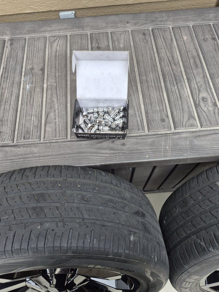 VenmoThese 20 inch KMC slides. These wheels have two different lug patterns 5x5 and 5x5.5. They will work on Jeeps, Chevys and fords. possibly others also. They are in excellent condition absolutely no curb rash, or bent. Tires still are still good tread. Comes with lug nuts.