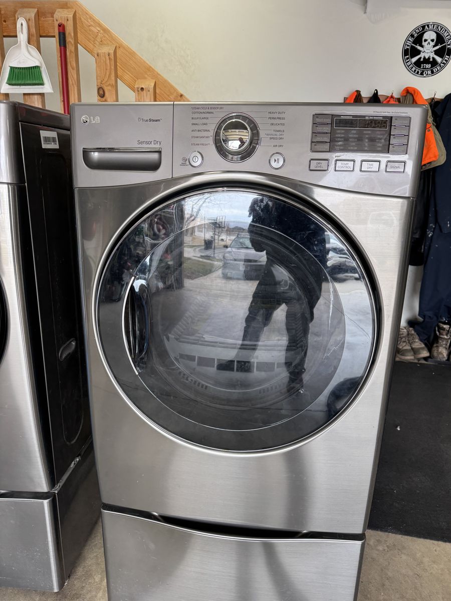 VenmoLG washer and dryer combo. Front loading high efficiency with pedestals. They are in good working order with minimal wear. They have been great for us but we just upgraded to all new appliances in kitchen and laundry. 500$