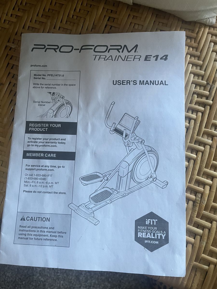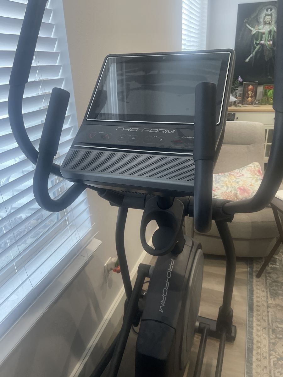 VenmoProForm Trainer E14 Elliptical Includes: · 14” Interactive HD Touchscreen Display · 19” Power-Adjustable Stride · CoolAire™ Workout Fan · Built-In Speakers with Bluetooth® Headphone Connectivity