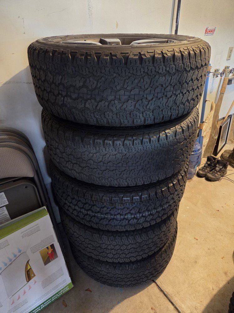 GooglePaySet of 5 20" wheels taken off a new Defender (L663). Tires still have probably 20k miles of tread left (5th wheel's tire is brand new). No chips or scratches, just some brake dust to spray off. TPMS not included (~$50/piece online).