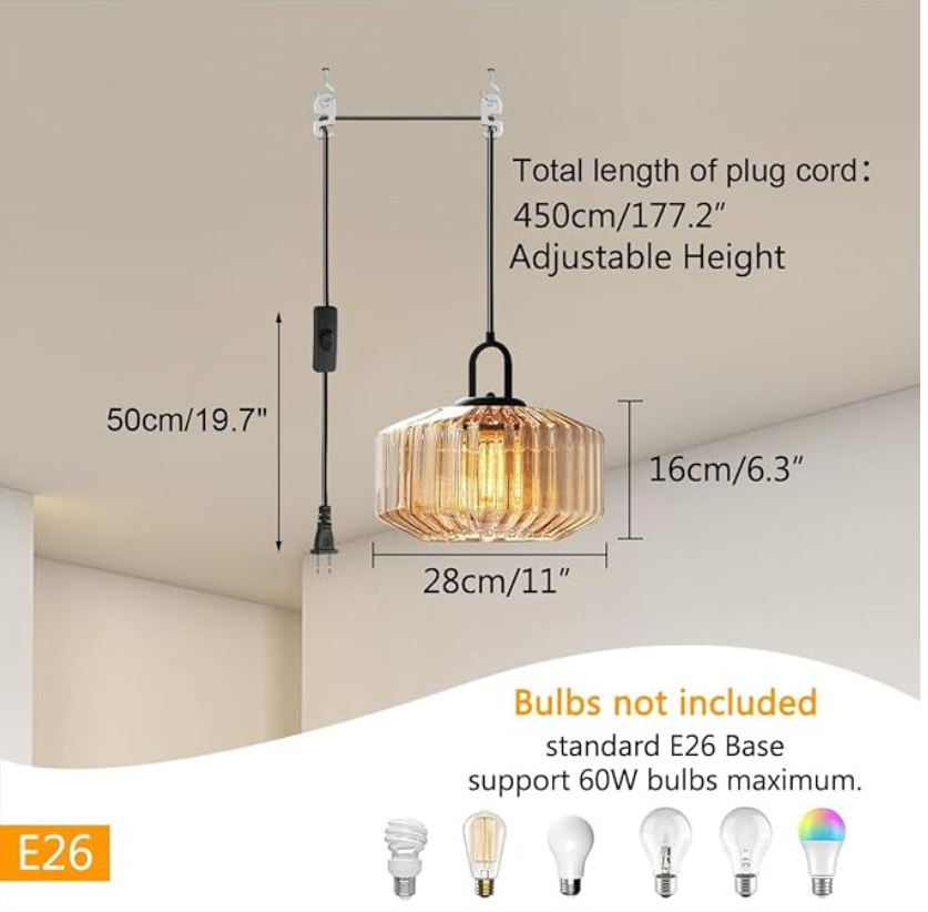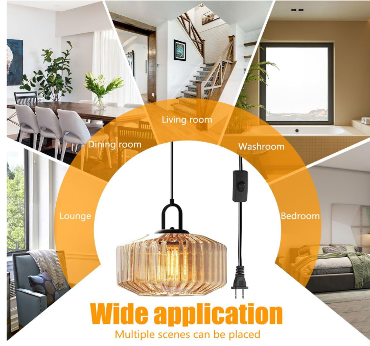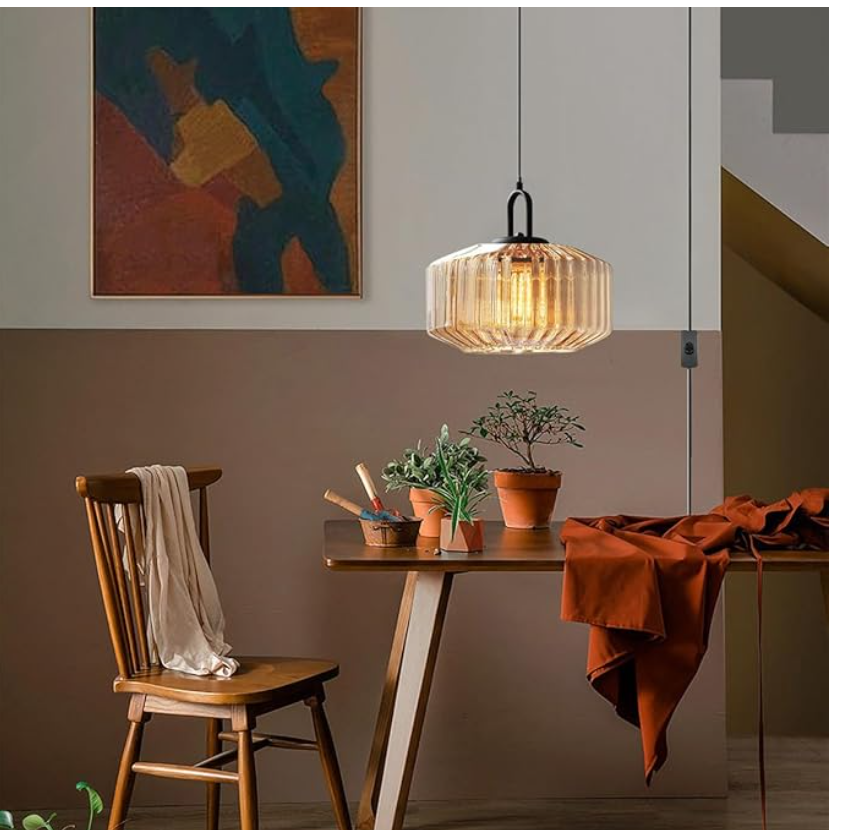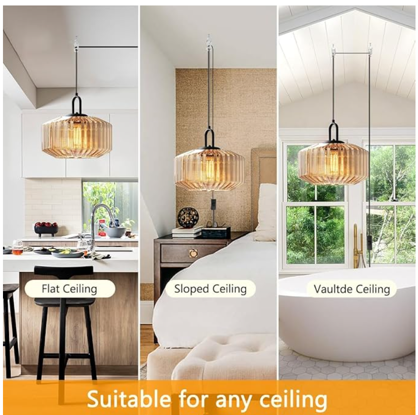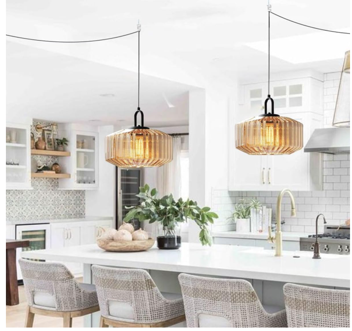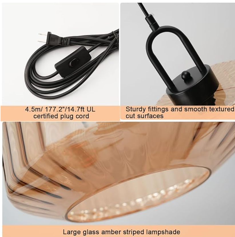VenmoBrand new modern pendant light with amber glass shade. Stylish design that works great in kitchens, dining areas, bedrooms, or living rooms.