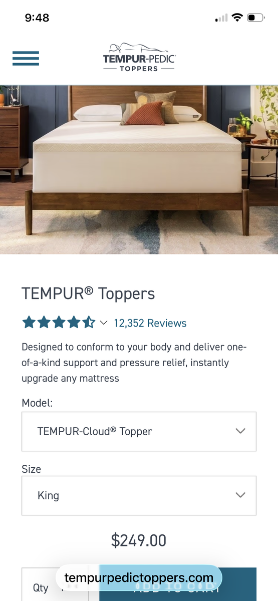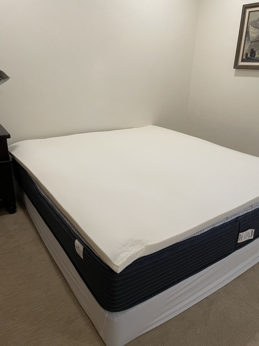 Hello. I bought this mattress topper last week to help with our firm mattress. Unfortunately, it is too soft for my husband and we can't return. I purchased for $249 and am selling for $150 firm. I have the receipt for proof of recent purchase and the cover.