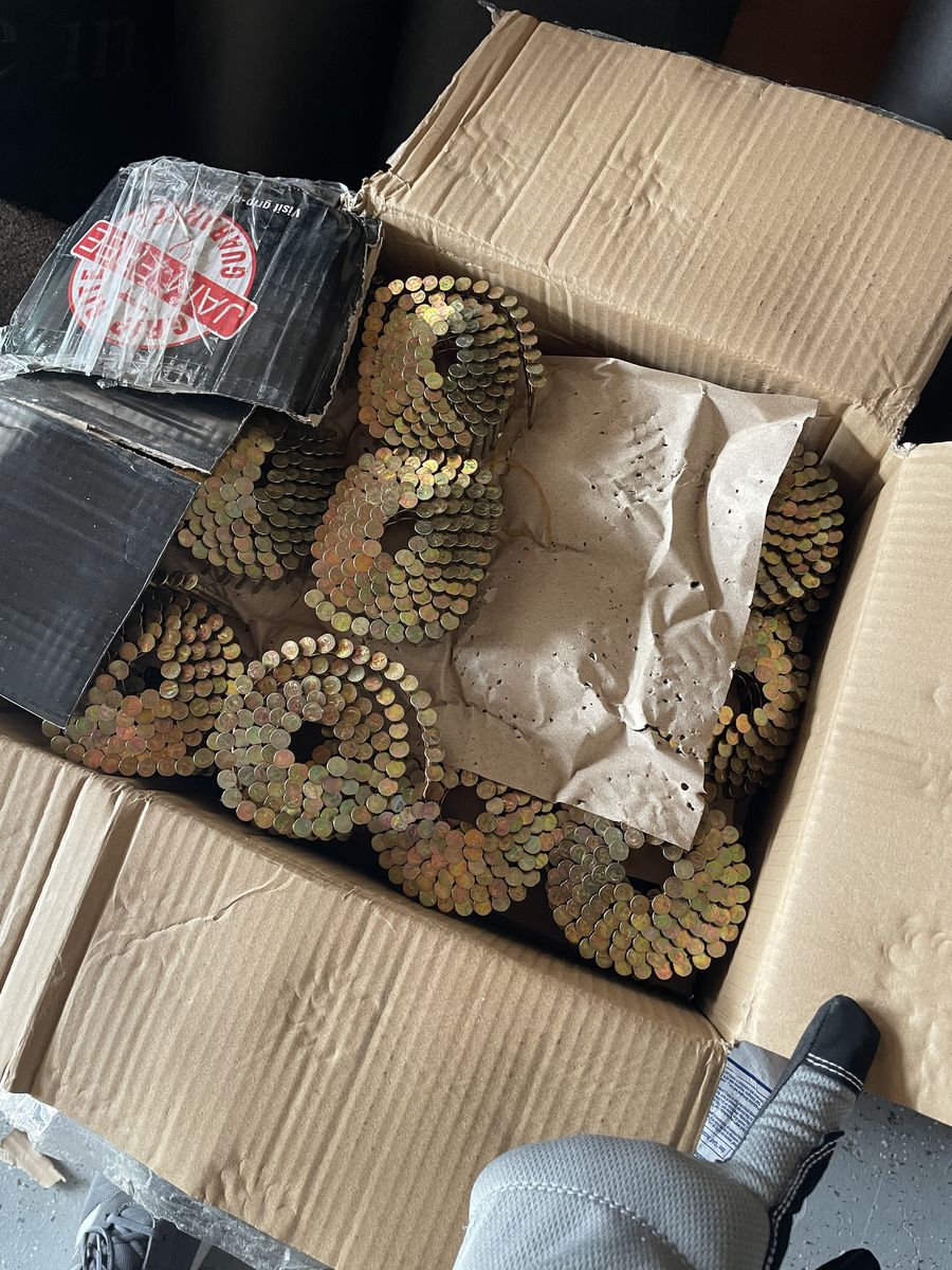 I have about 6 full bundles of shingles. 30+ of the nail rolls. And maybe 20 yards of paper. That one I haven’t measured