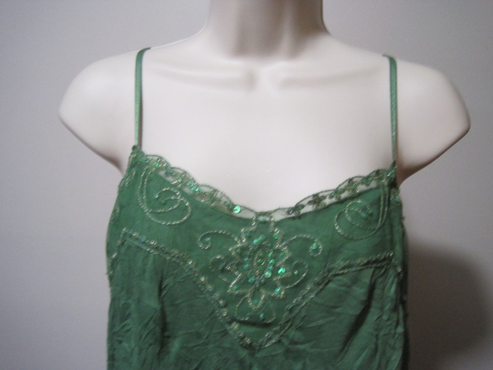 The Xhilaration Women's Green Lacy Sequin Embroidery Camisole Tank Shell in size medium is a stylish and lightweight camisole perfect for adding a touch of glamour to any outfit. Made of 100% polyester with a lace fabric type, this tank shell features embroidered and sequin accents for a chic look. It is machine washable and designed with adjustable straps, a tagless interior, and breathable material for comfort. Ideal for everyday wear or special occasions, this camisole is a versatile addition to any woman's wardrobe.