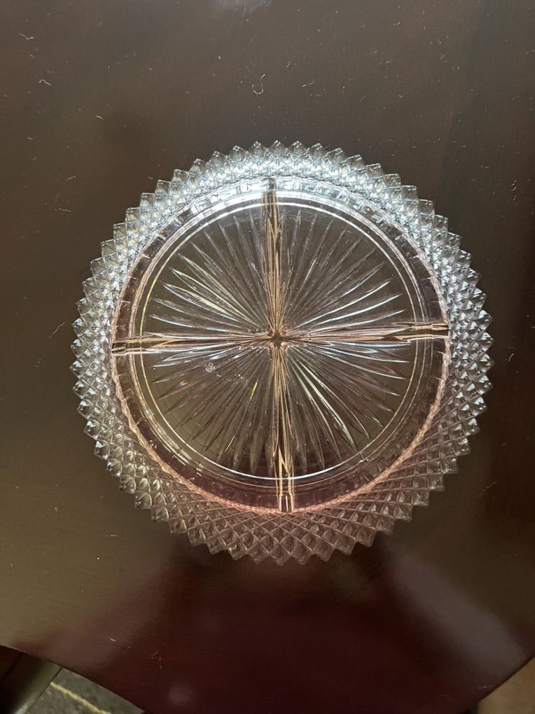 Depression Glass divided serving plate pink in color . $15