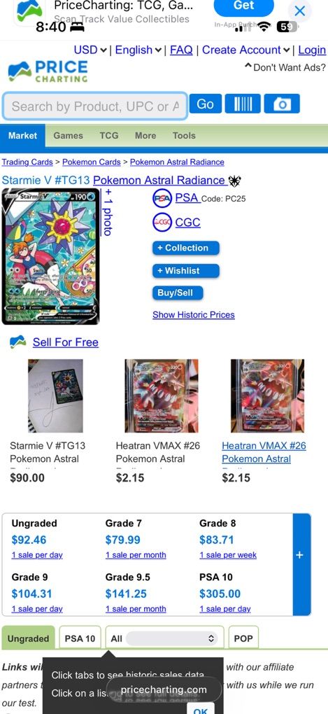 Pokemon Astral Radiance Starmie V TG13 NM condition $80