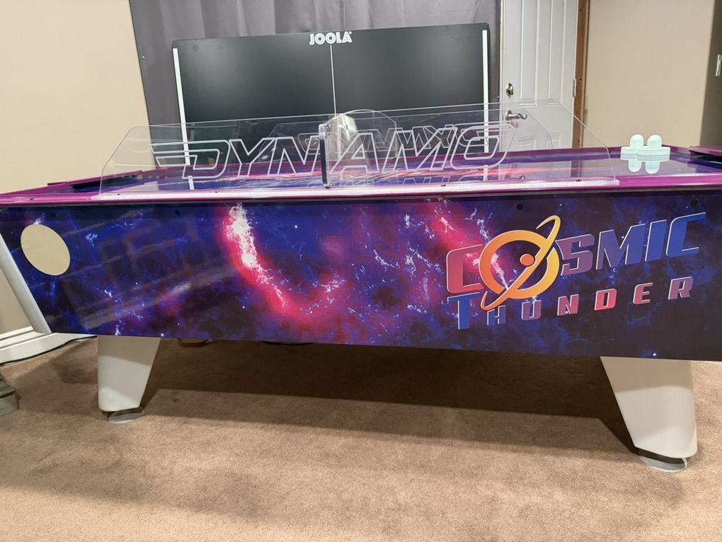 ApplePayDynamo cosmic thunder air hockey table. This is a full size 7’ table like you see in arcades. Purchased this brand new in 2020 and has been used a couple times a year. These tables sale for $8,000 brand new. This is currently in my basement completely together so I can show you it’s in perfect condition. This will need to be unassembled to transport. This is something we will do and have in my driveway ready to go for you when the time comes. This is a pick up only item.