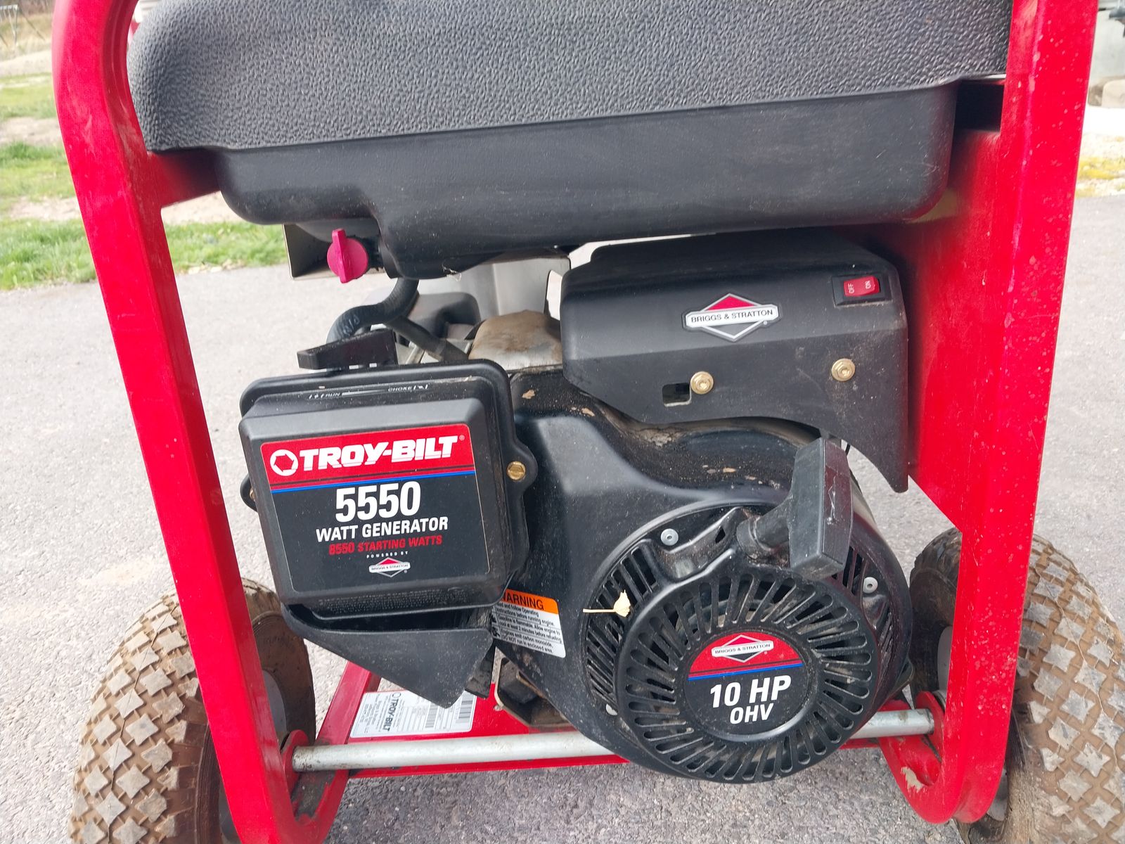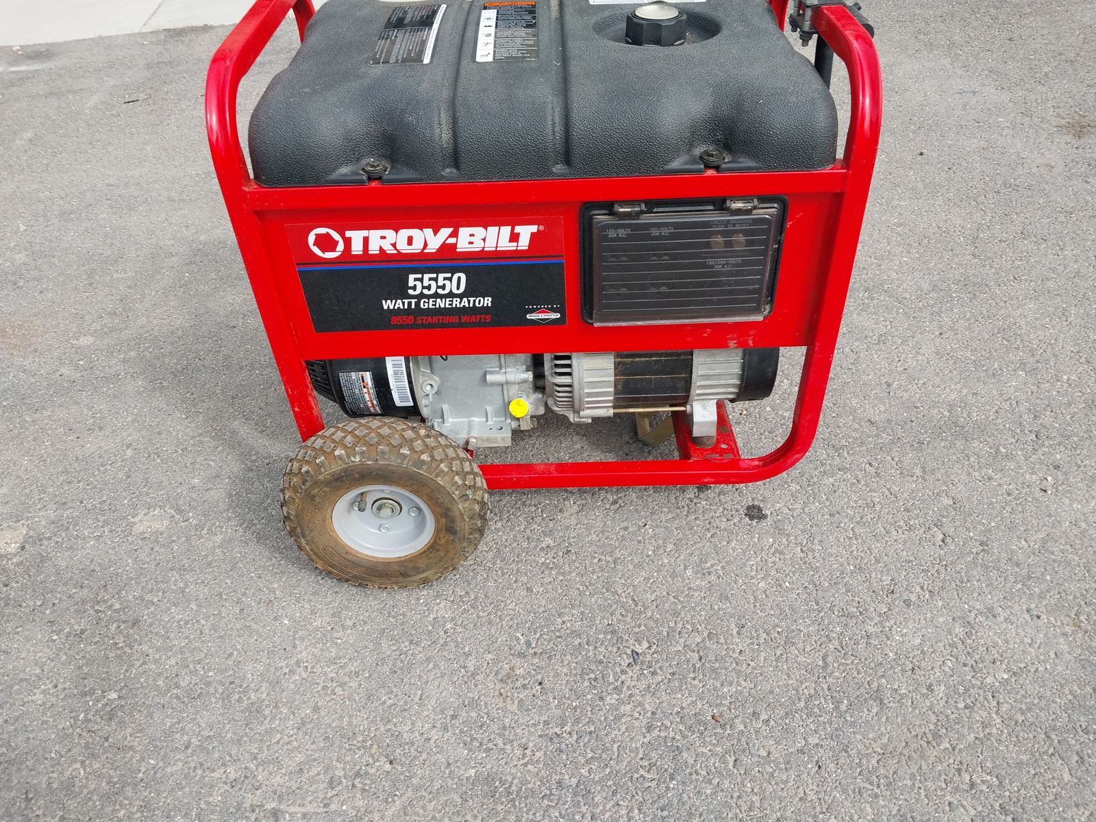 Troy-Built portable generator, 10 HP Briggs and Stratton motor,5550 Watts, 4- 120 volt outlets 1-220 volt outlet. Runs perfect used 1- time