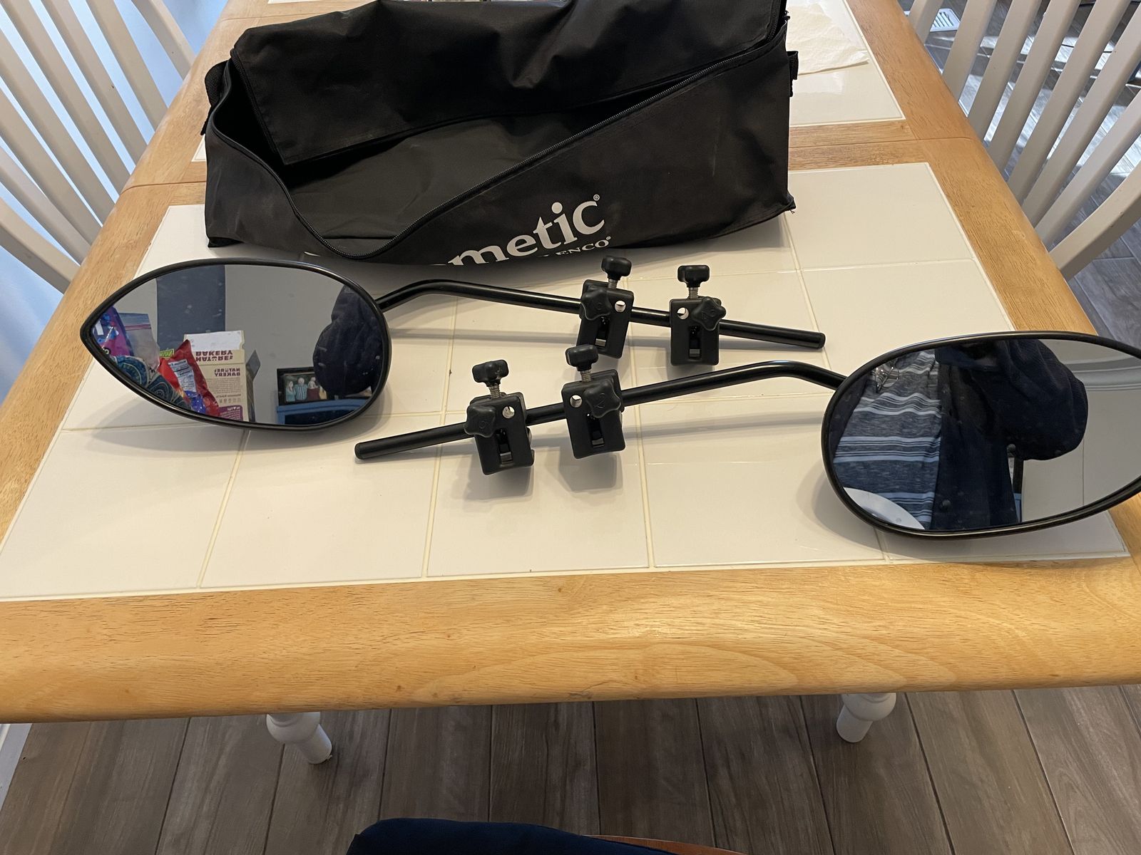 Clamp on mirrors for traveling with a trailer Like new will fit any mirror. Great for seeing your trailer. Perfect for suvs