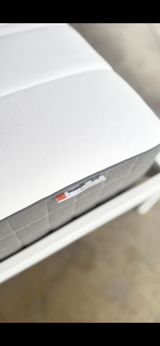 • Lightweight, modern design • Structurally solid • Easy to disassemble for transport Mattress – $100 IKEA HAUGSVÄR • Medium-firm • Clean, no stains or odors, smoke free pet free • Lightly used
