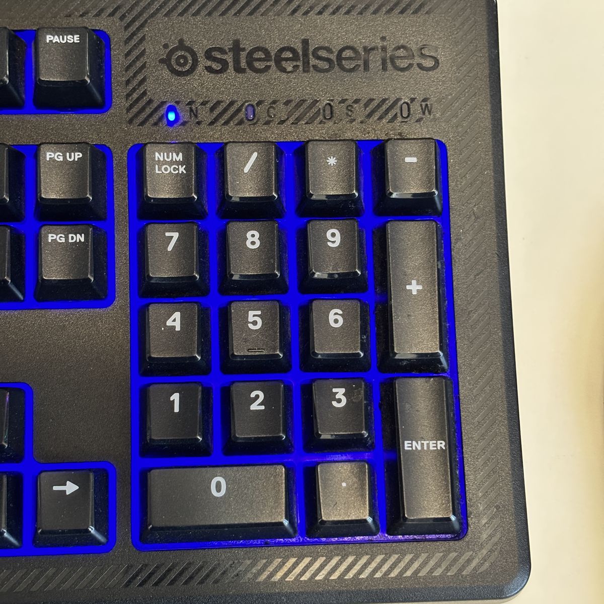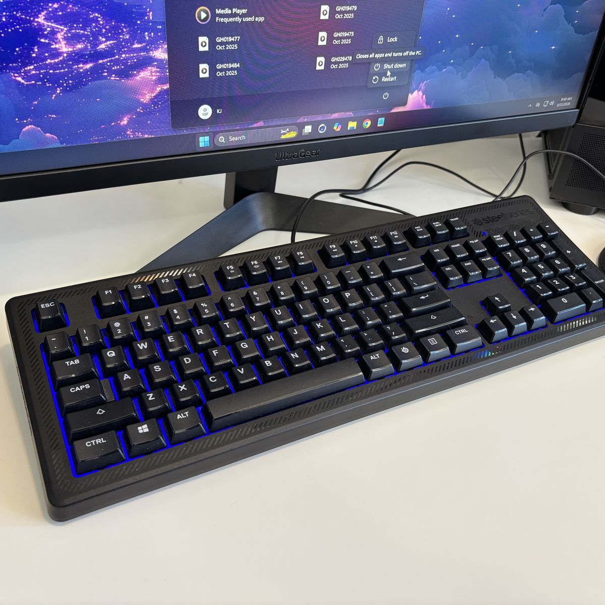 • Keyboard: SteelSeries Apex 100 (blue backlighting)
