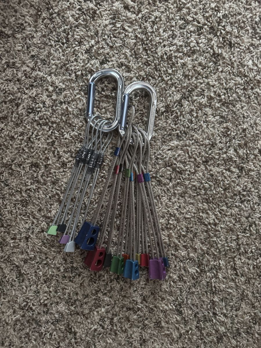Metolius ultralight asymmetric set. DMM Peenuts set 10 slings w2’ bd runners 2. 4’ bd runners.