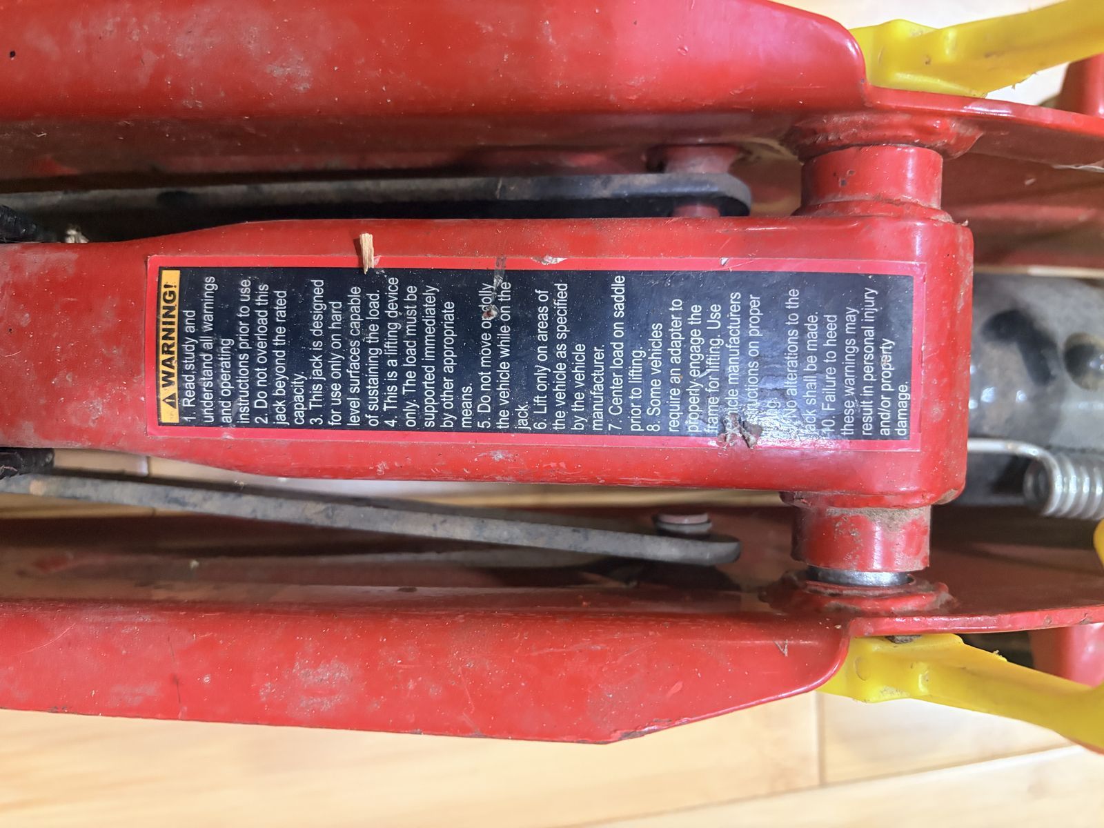 The jack works as it should and lifts smoothly. It has normal cosmetic wear from use (see photos), but nothing that affects performance.