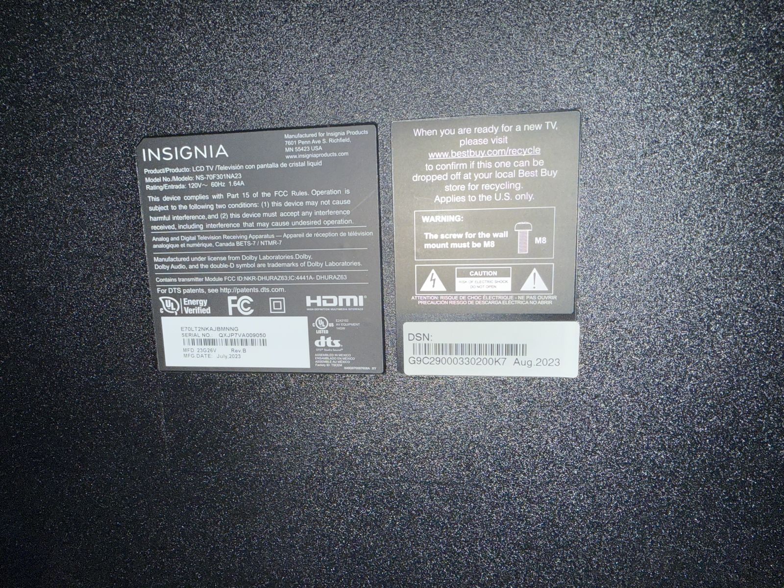 VenmoInsignia 70” 4K UHD Smart Fire TV – Like New! Selling my Insignia 70” Class F30 Series LED 4K UHD Smart Fire TV. This TV is in like-new condition. barely used and still looks and works perfectly. I’m moving soon and simply don’t have the space or need for it, so it has to go! Comes with remote. 70” screen – great for any living room 4K Ultra HD picture quality Built-in Fire TV – Netflix, Hulu, Prime Video & more built right in Like new condition – no scratches, scuffs, or issues Feel free to message me with any questions!
