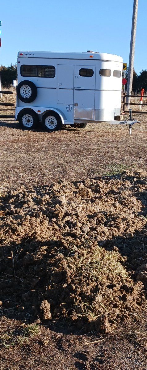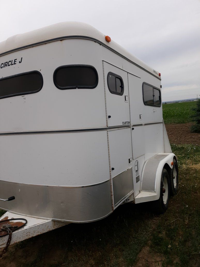have a 2 bumper pull horse trailer straight load for sale.good mats good flooring had axeles gresed last year good trailer strong carried my 1500 lb horse from colorado to utah with no problem pulls straight spare tire can take the divider out lots of room.only thing wrong is the bottom left hinge is broke on it.clean clear title.