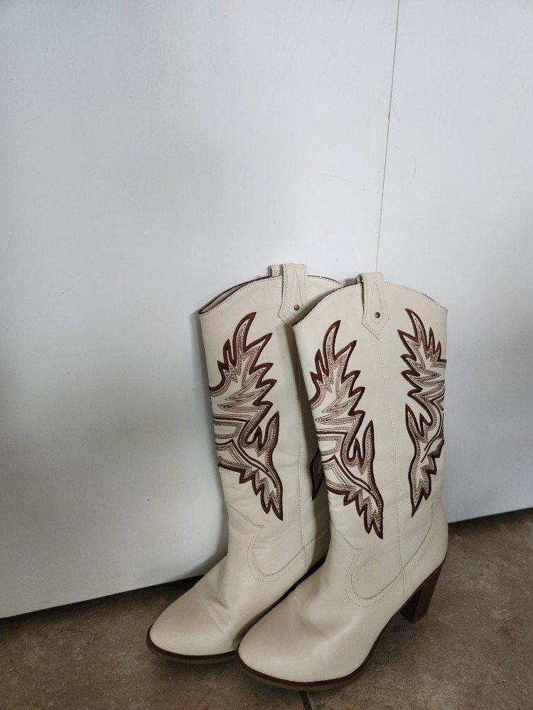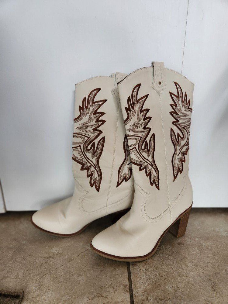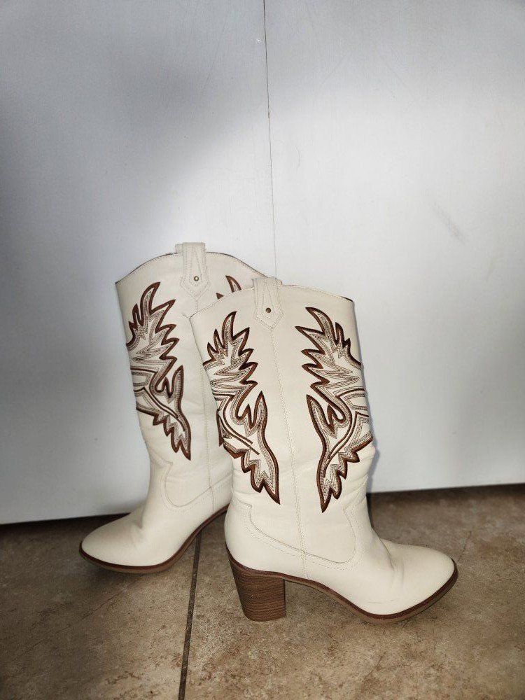 Size 8 1/2 Embroidered faux leather pull-on boot Cushioned footbed 13 1/2" shaft 14 1/2" calf circumference 3 1/2" heel ITEM NO. 56530MH2133 STYLE MH2133 | SKU 966259
