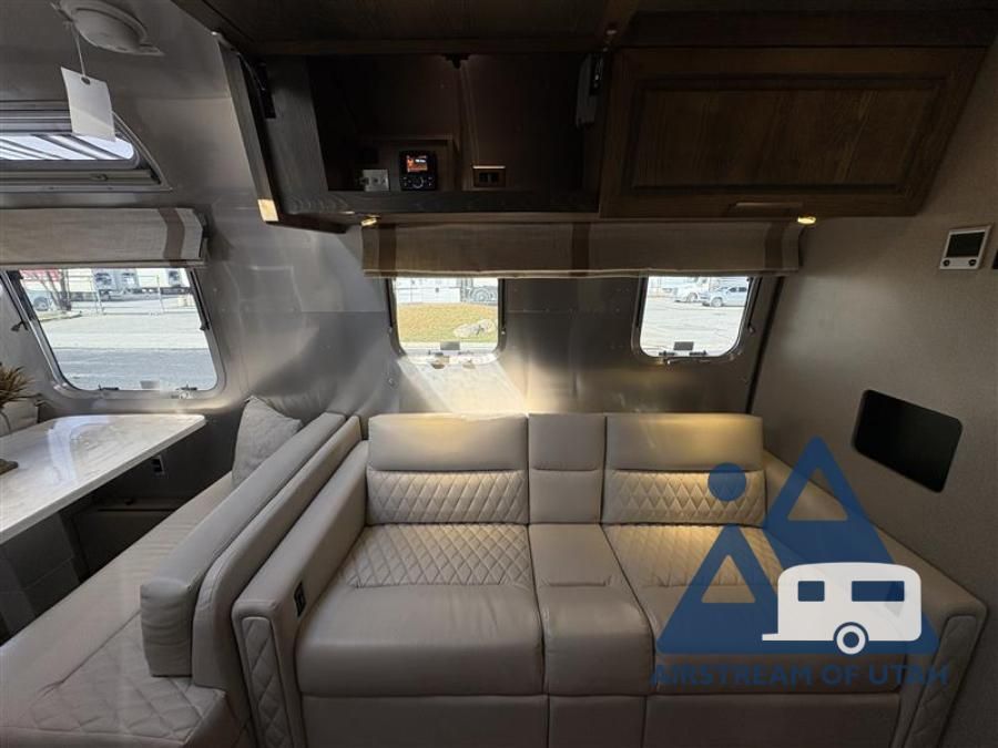 When it comes to full-time luxury living on the road, none other will do than a Classic travel trailer by Airstream. The sophisticated interior includes Ultraleather seating, a luxurious bathroom, handcrafted hardwood cabinetry, and a top-of-the-line kitchen with premium appliances. You will appreciate the rear-view monitoring system to easily park your trailer at the campsite, plus there are four powered heavy duty stabilizer jacks for easy set up. After you've unpacked, set up the powered ZipDee patio awning and adjust the LED dimmable awning light as you enjoy a cold drink. The Classic travel trailers also include QuietStream climate control that cools your unit quietly and evenly for a truly comfortable environment. Additional features you'll appreciate include a doorbell, a safe for valuables, two cushion ZipDee chairs, and premium environmental friendly insulation.