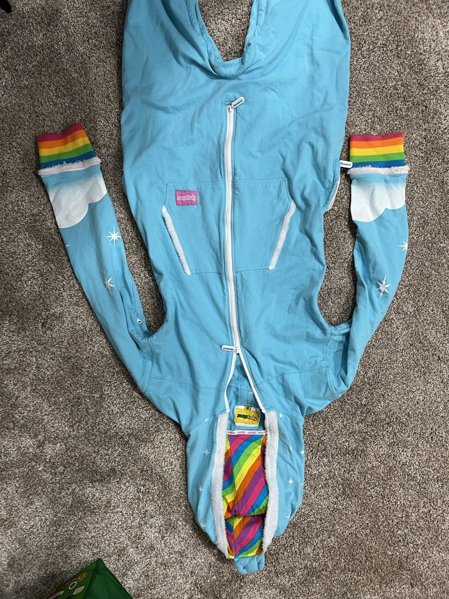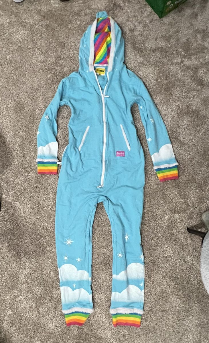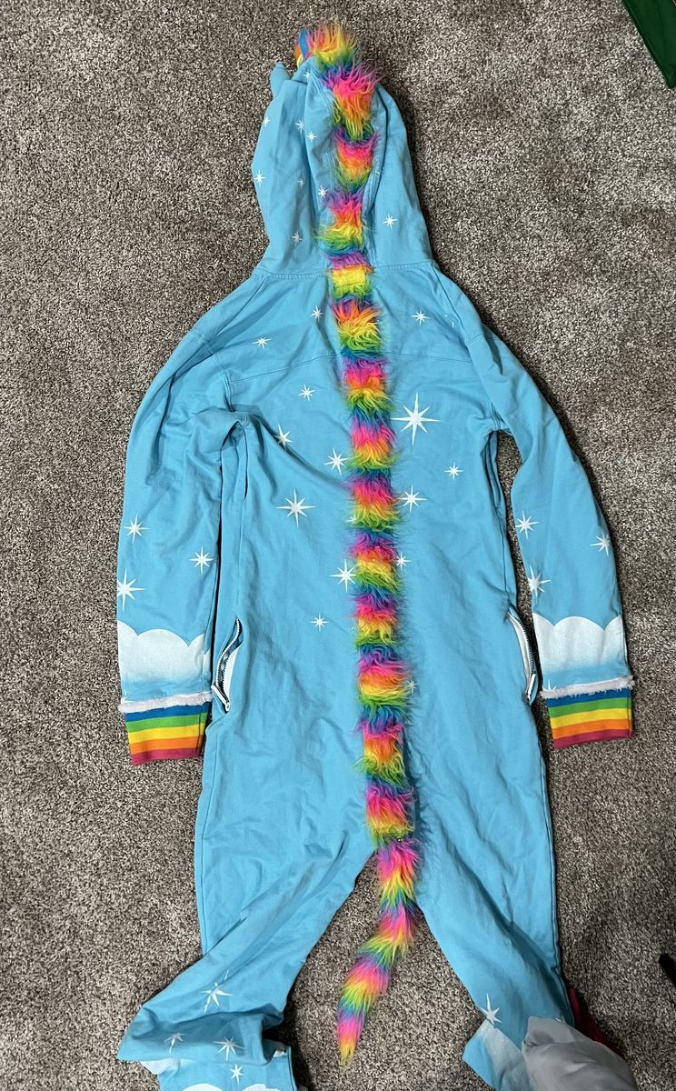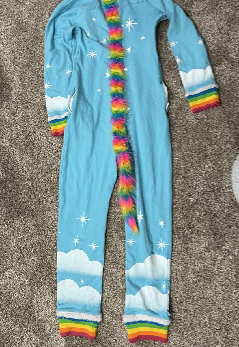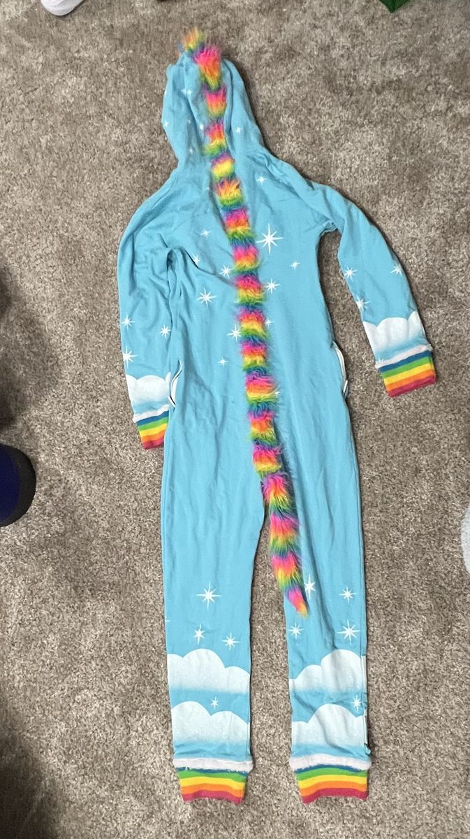 VenmoSize is Large. It was tailored and is a slim fitting Large now. Only worn a couple times. In great condition. Has zippered pockets, very well made. DESCRIPTION: Who said festive had to be frightful? Is your best friend a leprechaun and your roommate a fairy princess? If you fart glitter and sneeze rainbows, then man, oh man, do we have the costume for you. Forget tricks this Halloween, with our Unicorn Jumpsuit you're in for a real treat. IF you're sick of sexy costumes, get on that mystical tip and try this unicorn onesie on for size. No assembly required. This one-piece wonder comes with horn and sassy tail included. And our Unicorn Jumpsuit is so magically comfortable, we're sure you'll be wearing this onesie all year long. Asking $50 Cash or Venmo Located in South Jordan, can meet in the Murray area as well. Text (preferred) or Message to arrange pickup. Thanks for looking