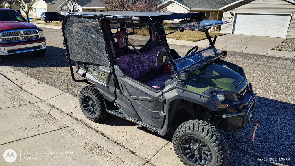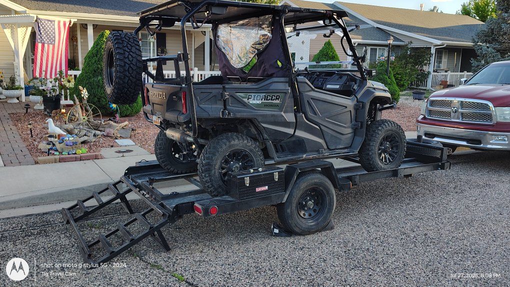 2016 Honda Pioneer 1000-5. Has all the extras! Street legal kit. Flip up windshield. Winch. Aluminum roof. Led light bar. Side lights. Led side mirrors. Rear view mirror Rechargeable dome light. Heated seats. Seat covers. Mid cab zippered window. Rear bed removable window. Rear side bed wind block screens. New swing out tire carrier with new spare tire. New gas strut for the tilt bed. Just installed a 4" blower fan under the seat to keep the cab cooler. Just serviced for its 600 mile cycle. Plus the trailer comes with. It has ramp legs so you can load/unload without being hooked to the truck. Looking for $13,000.⁰⁰ /obo