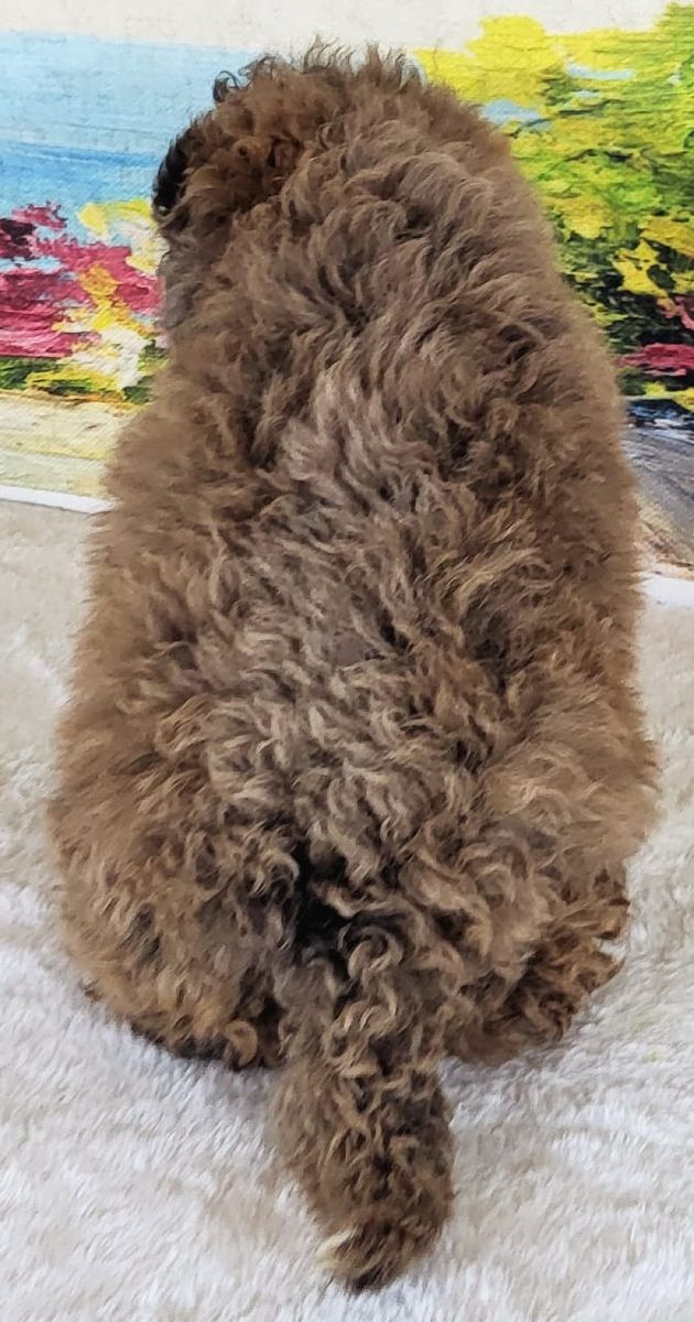 ZelleKiwi is a lovely Micro Goldendoodle girl with a soft, curly coat and a gentle, affectionate personality that makes her instantly lovable. She enjoys being close to her family and has a sweet nature balanced by a playful, curious spirit. Whether she’s checking out her surroundings or relaxing beside her favorite people, Kiwi brings warmth and happiness everywhere she goes. Since she is expected to stay small, Kiwi is a wonderful option for apartment living or homes of any size. Despite her petite build, she has the friendly, smart, and people-oriented personality Goldendoodles are known for. She has been vet checked, vaccinated, microchipped, and comes with a 2-year health guarantee. With early socialization and regular affection, Kiwi is growing into a confident and well-adjusted companion.