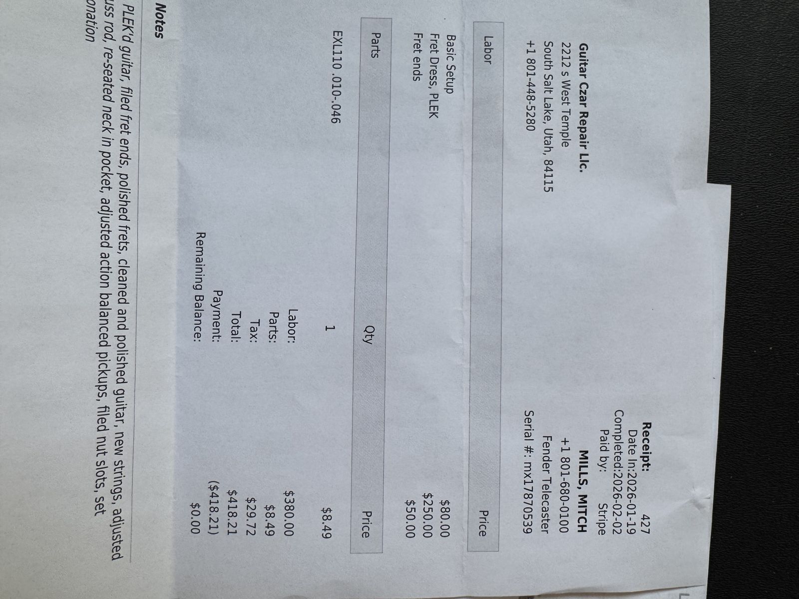 Recently PLEK'd at Guitar Czar so it plays like a dream.