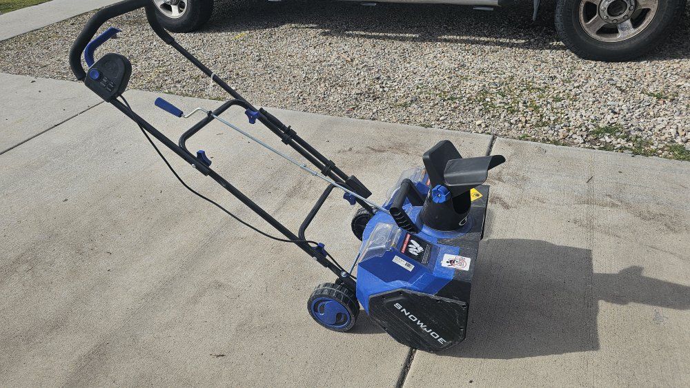 VenmoEfficient Snow Joe 24V iON+ cordless electric snow blower. Comes with two 24V batteries and a dual port charger. Has a light bar for evening use. Wheels make it easy to move. Great for clearing snow from driveways and paths. Willing to discuss reasonable offers. Cash preferred, I will not ship.