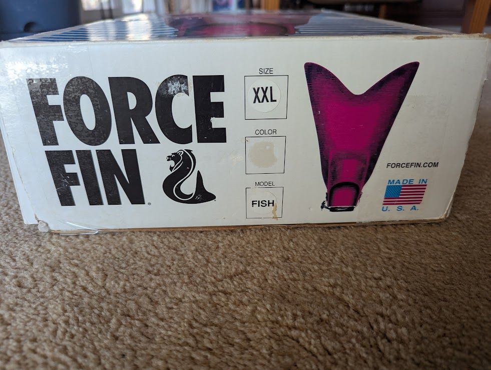 PayPalNew, never used and in original box Force Fins. Size XXL These are the best fins for float tube or kick boat/pontoon boat fishing. Great control. Work great with dive boots. Will fit a size 12 dive boot and probably size 13. (depends on construction of the boot). Will meet in Davis or Weber county. Shipping available.