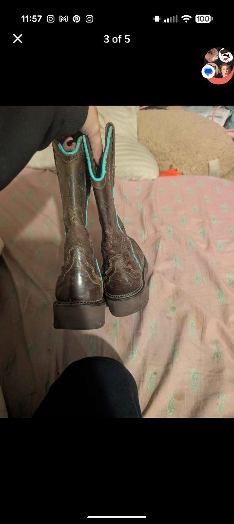 CashAppJustin square toe, women's boots, size 6B. I wore these a lot, i just don't wear them anymore. They are pretty work but they still have a lot of life left in them. The soles are foam and the insoles are pretty comfortable. Originally bought them for $150, only asking $60. SERIOUS INQUIRIES ONLY!! Pickup or meetup only.