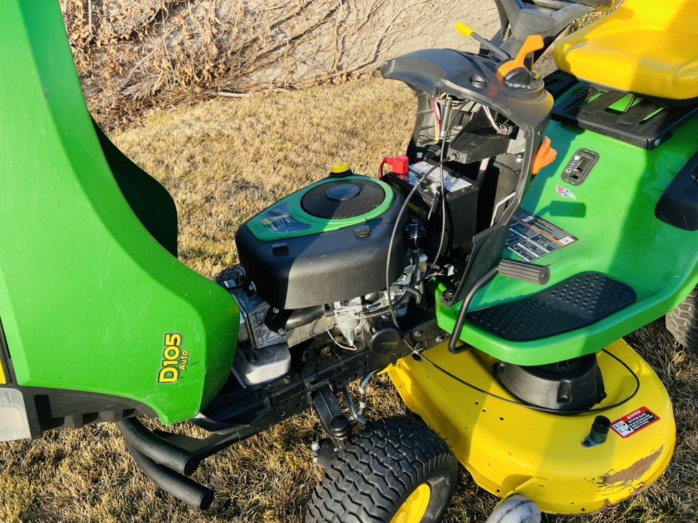 PayPalJohn Deere D105 riding lawn mower with bagger. This machine runs great with no problems. It has been fully serviced from top to bottom including leveling the mowing deck. It comes with a 42” wide mowing deck equipped with hi-lift bagging blades. It has a 17.5HP Briggs & Stratton engine, automatic transmission. It has 160 hours of usage on it. Below is a list of all the parts that have been replaced as a part of the service that was done on it. All parts are genuine John Deere brand parts. \