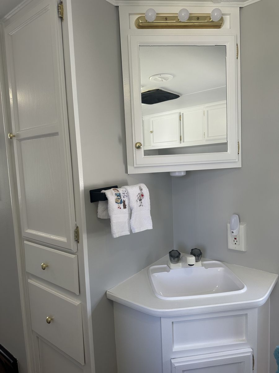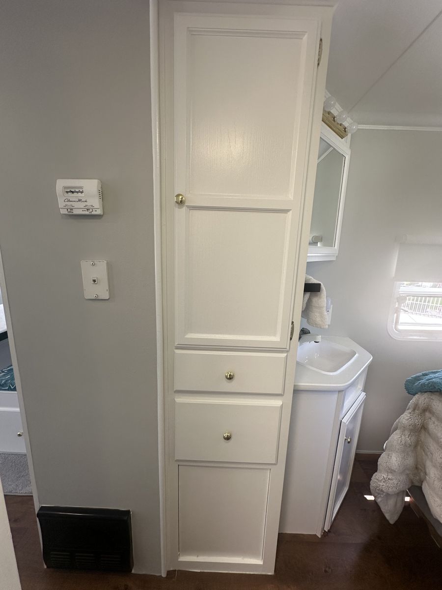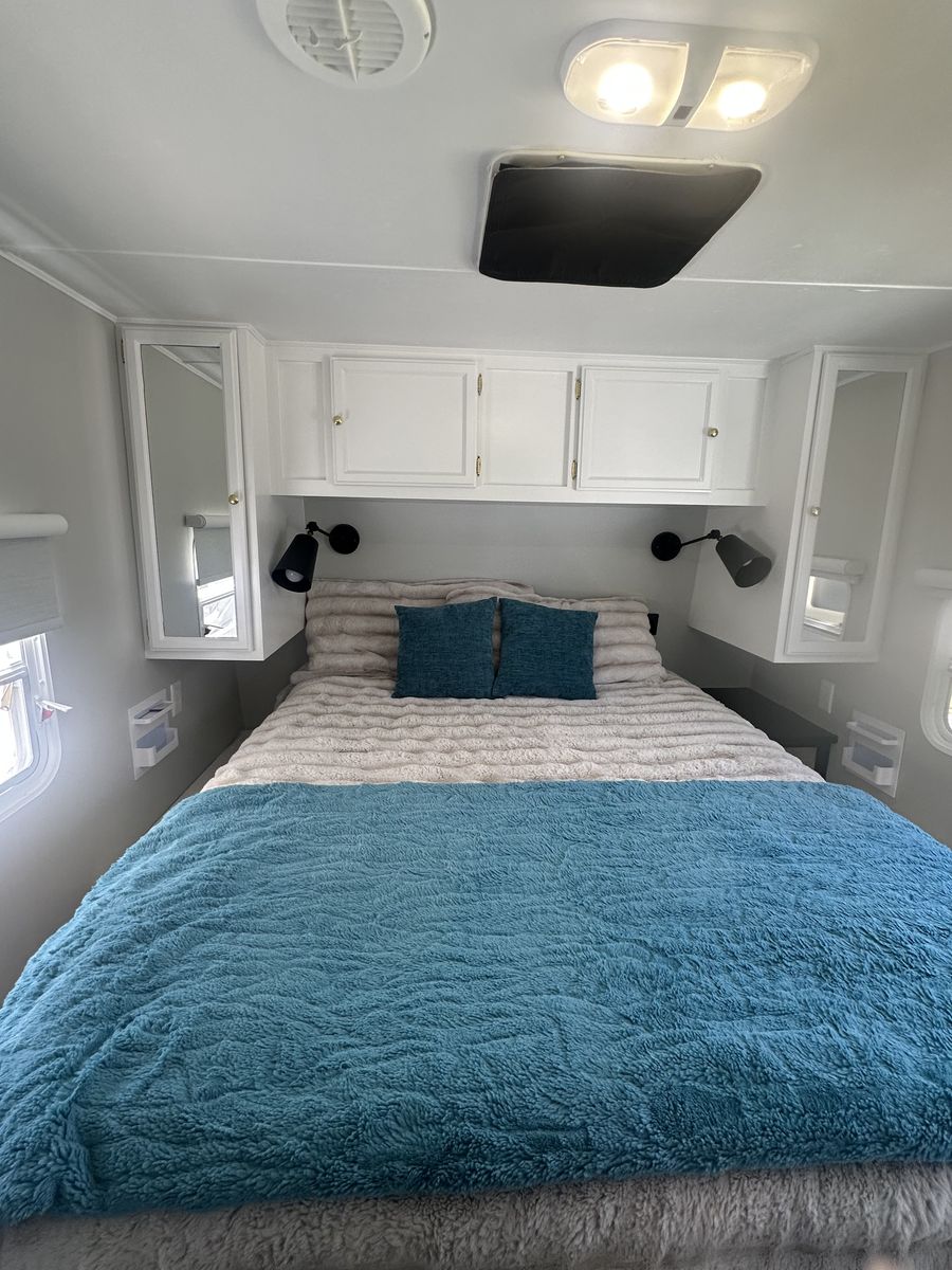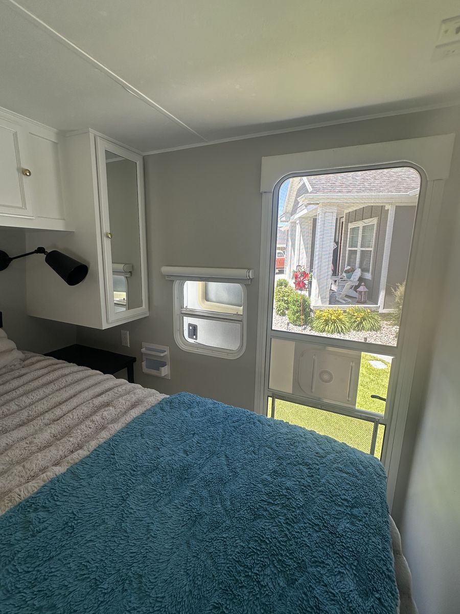 The exterior has all-new keyless door locks. We bought a heavy-duty hitch for extra safety towing. We also purchased all new batteries. All the seals were replaced around the slide. All new bearings were installed as well. Some professional painting was also done on the exterior.