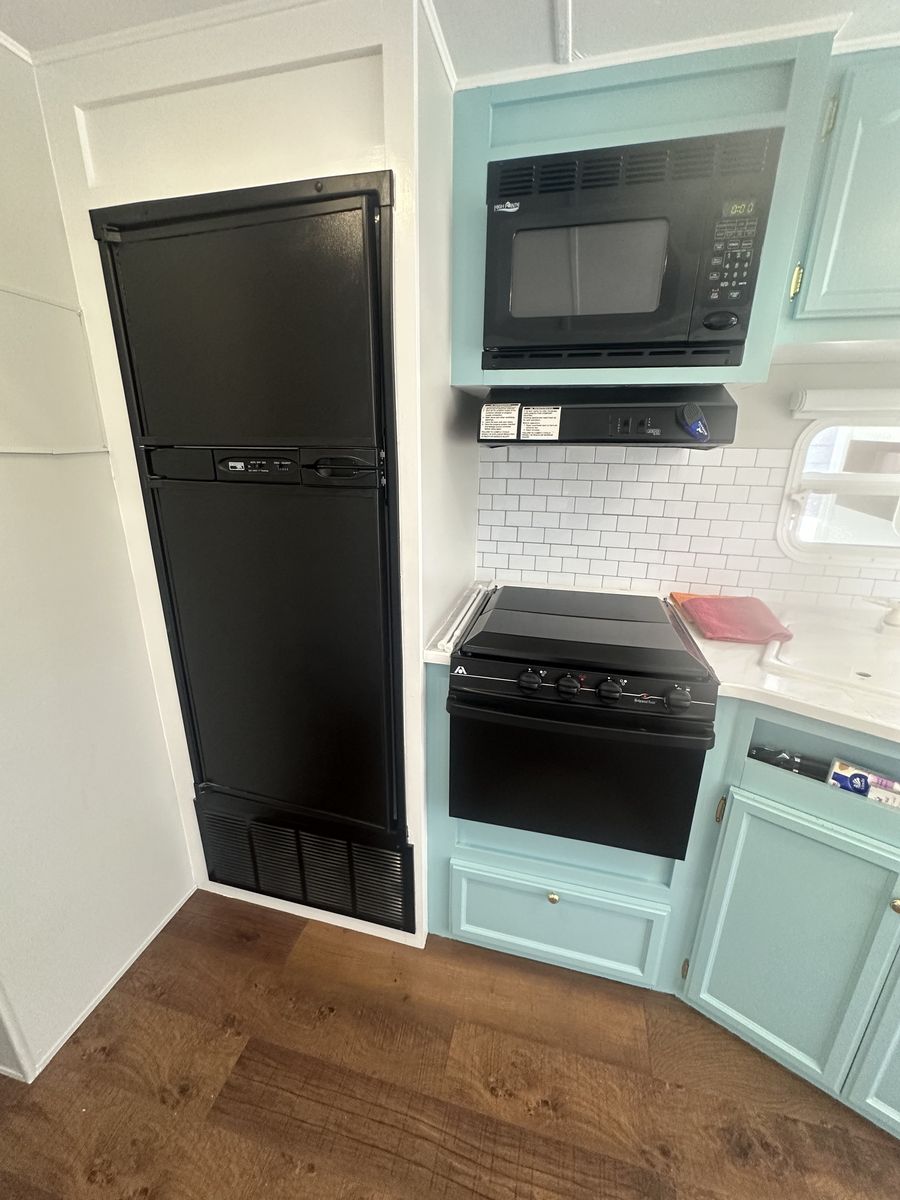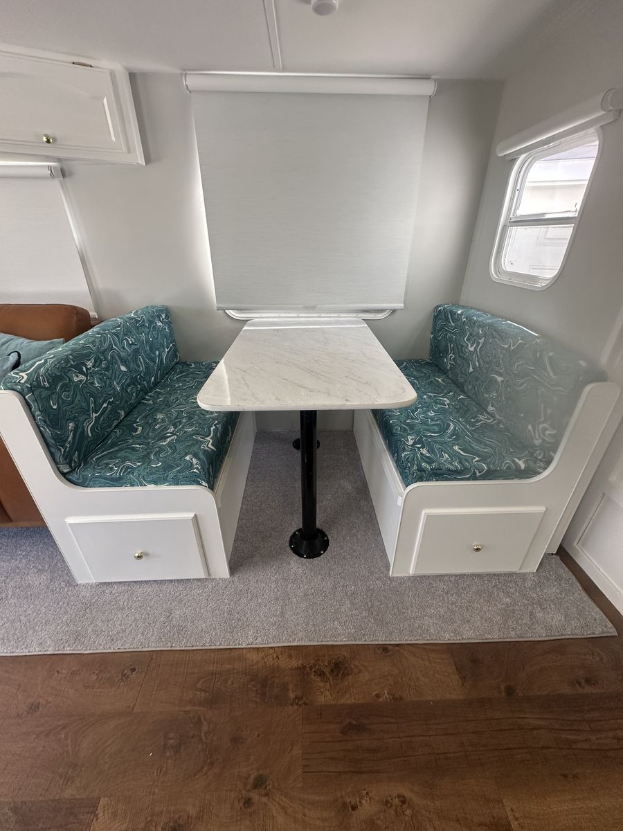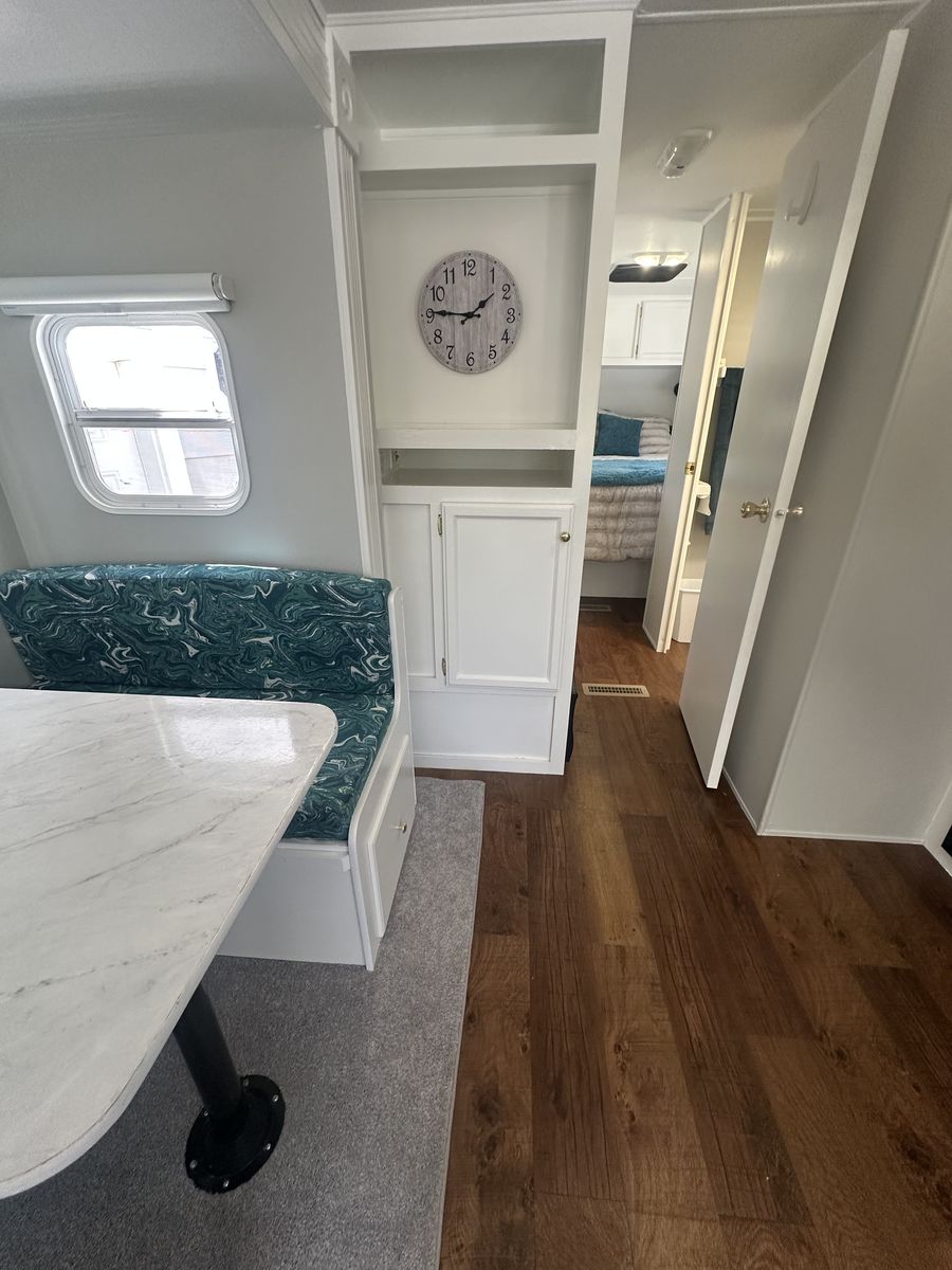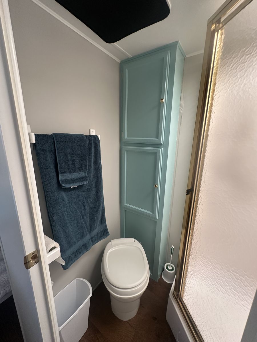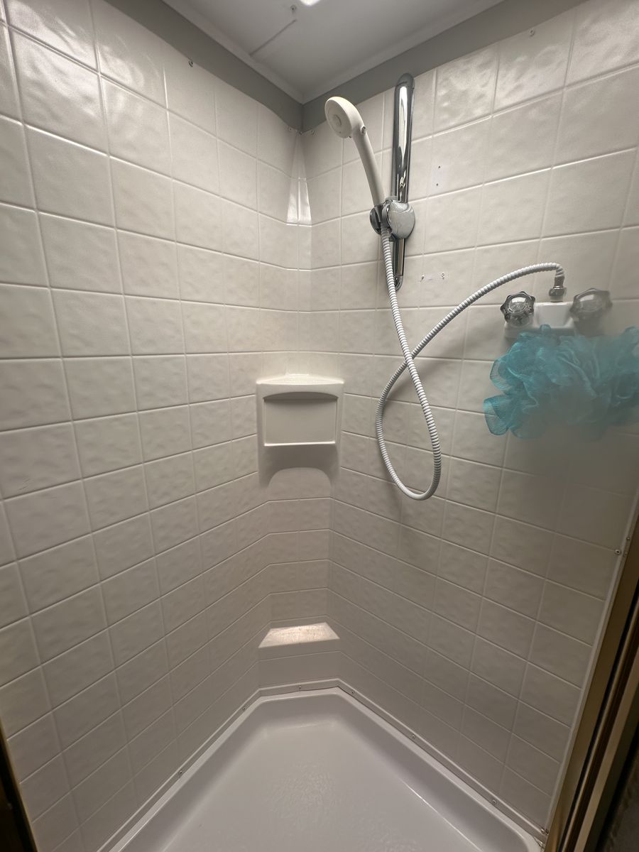 The exterior has all-new keyless door locks. We bought a heavy-duty hitch for extra safety towing. We also purchased all new batteries. All the seals were replaced around the slide. All new bearings were installed as well. Some professional painting was also done on the exterior.
