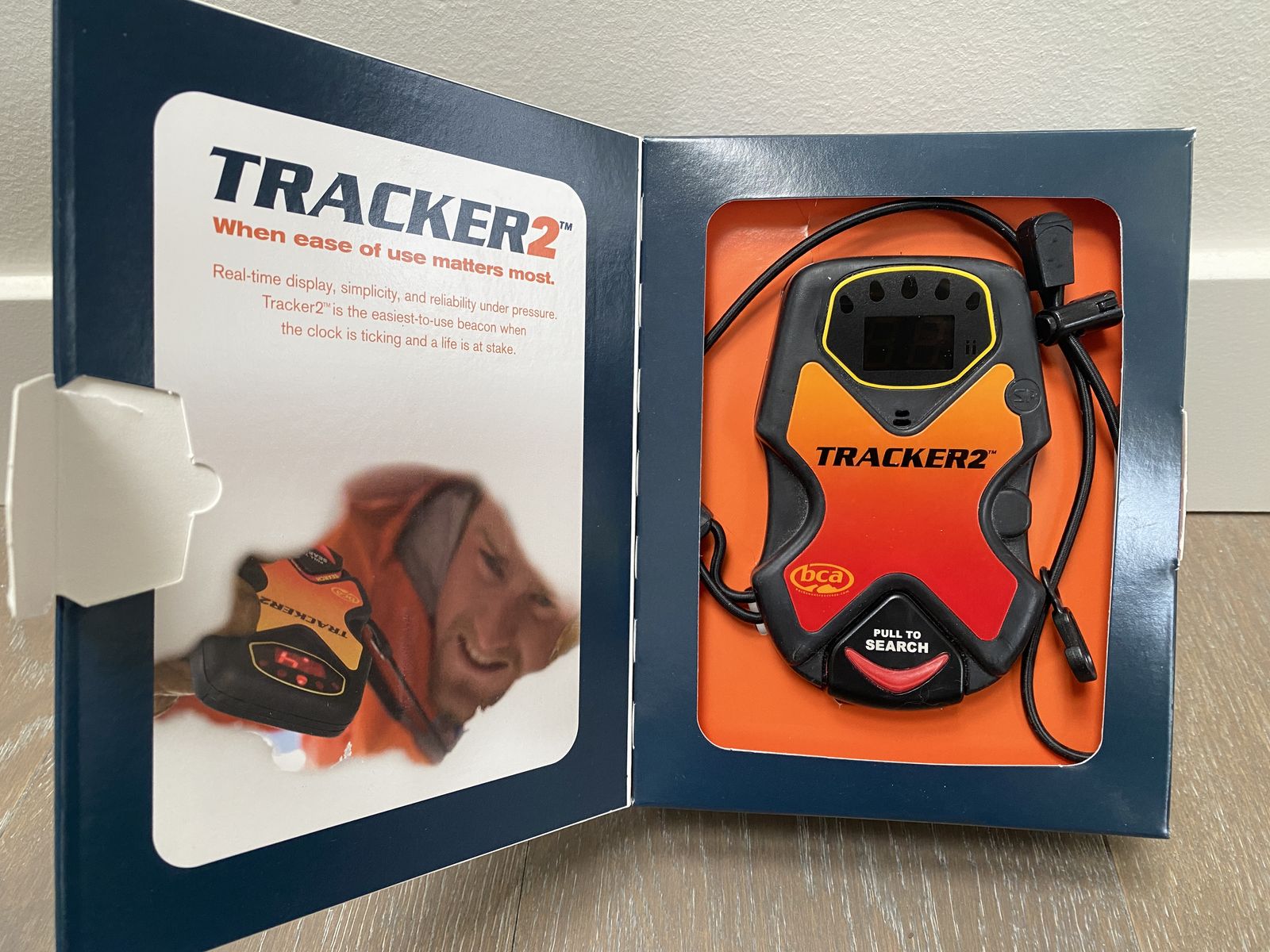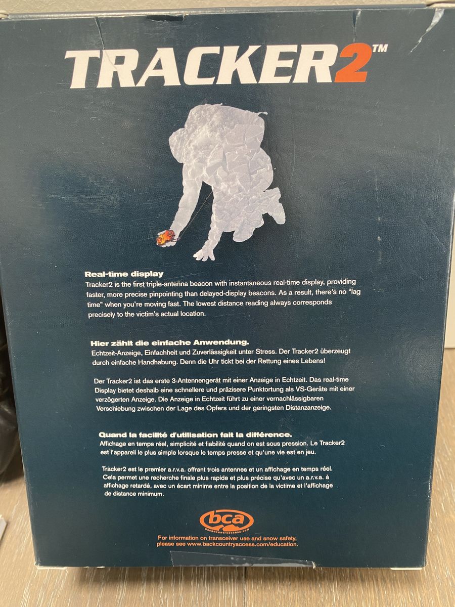 New in box, fully-functional Tracker 2 Transceiver including the original packaging, holster (dual strap), directions and BCA decal. Including 3 new AAA batteries so you'll be set to hit the backcountry asap.