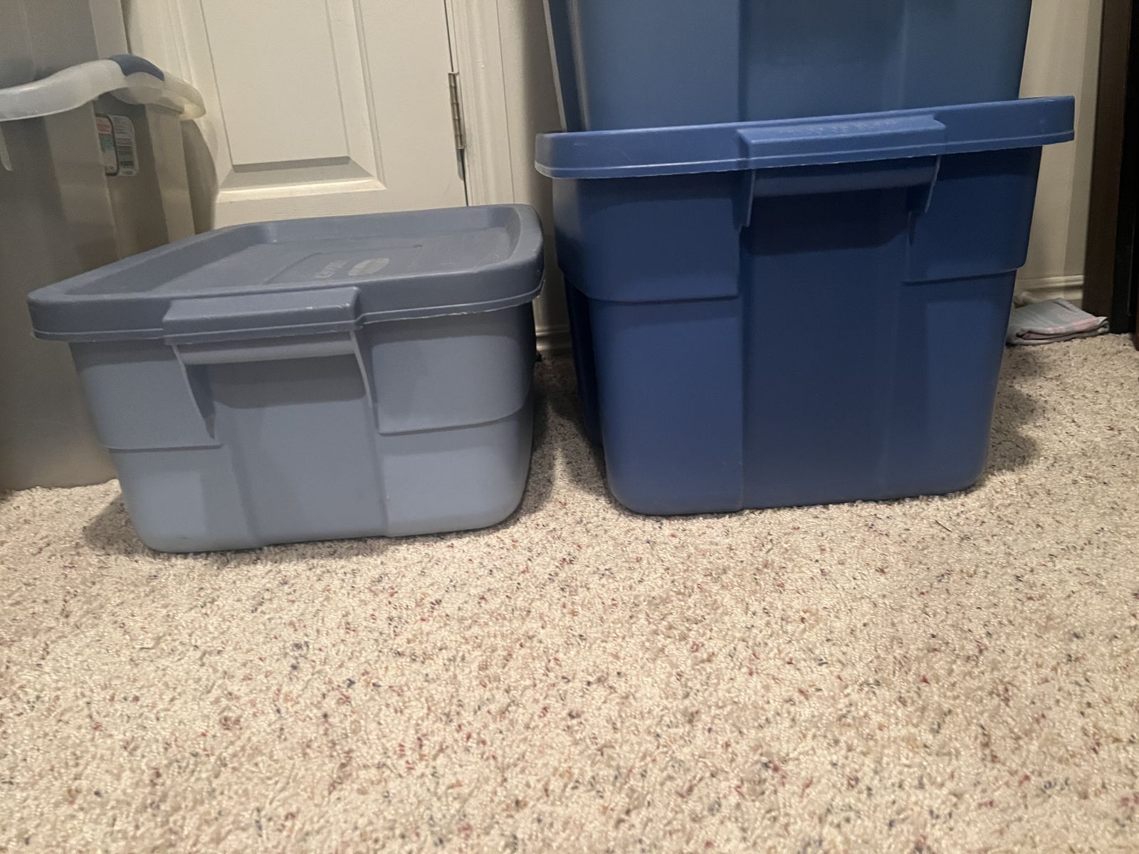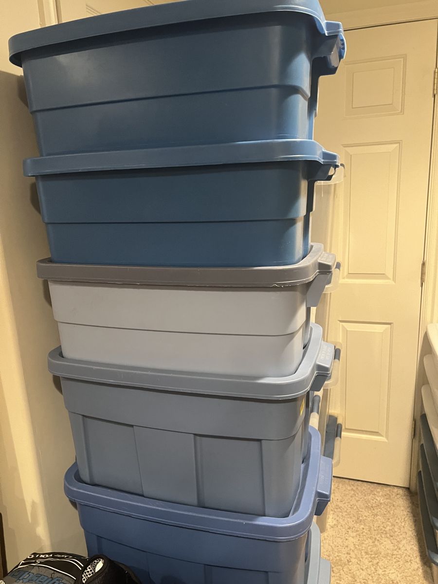 VenmoThese are great totes with rugged durability. There are 3 smaller bins (9 tall 15 wide 23.5 deep handle to handle) and 4 of the larger bins (12 tall 15 wide 23.5 deep handle to handle). Pick up in Herriman. Pet and smoke free home. Cash or Venmo. $10 each for large. $8 each for small.