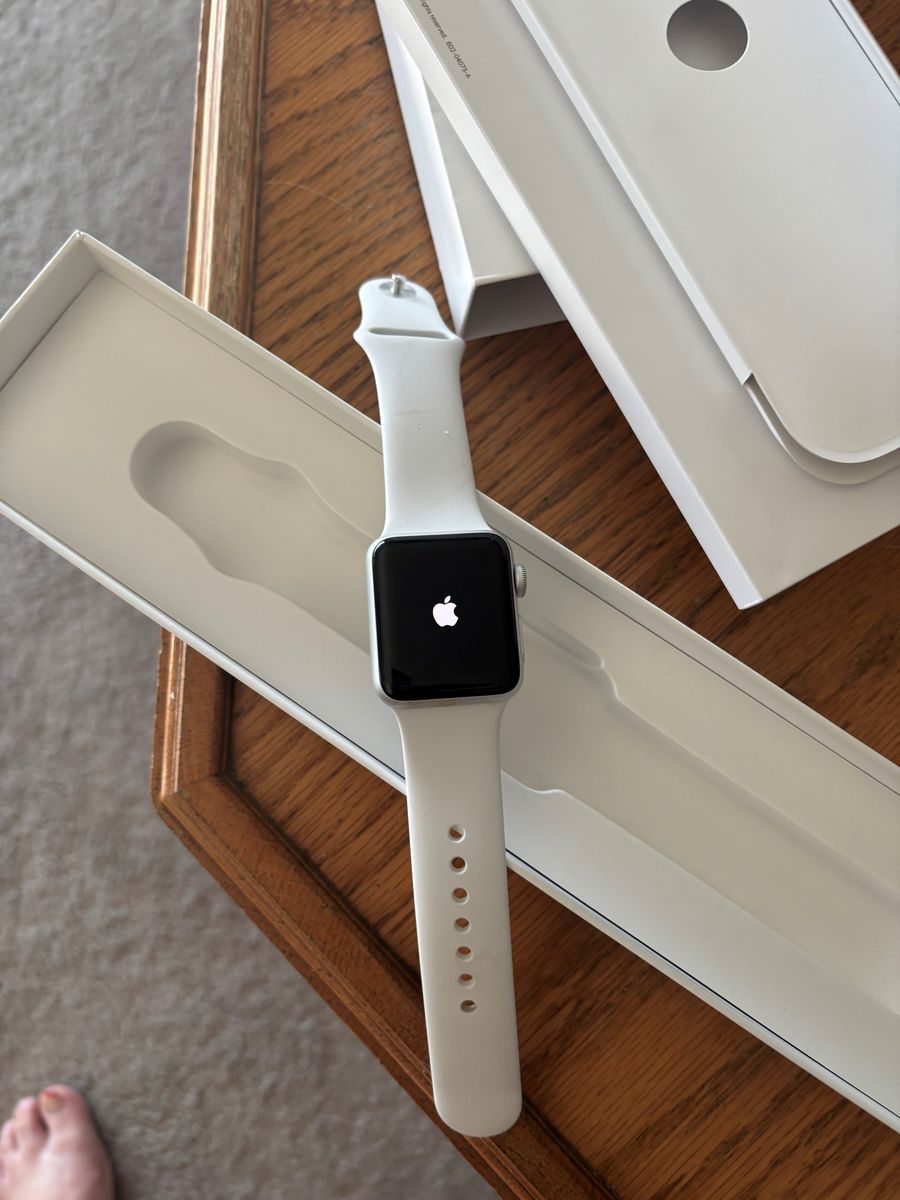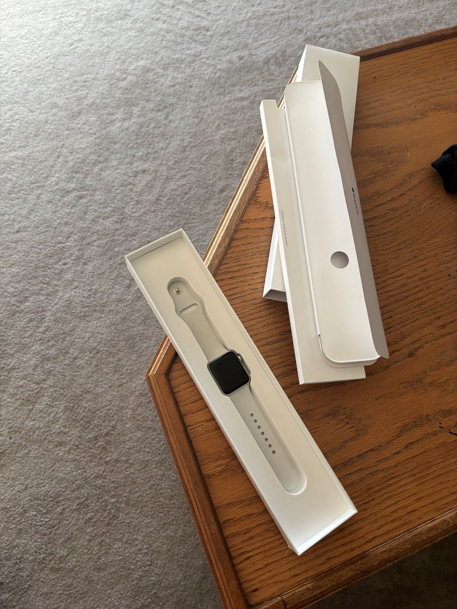 ApplePayGreat Apple watch series 3 works great. Comes with box, charger and an extra watch band for larger wrists.