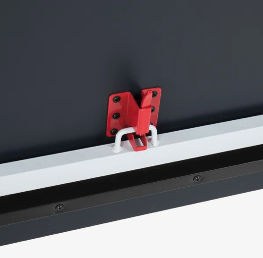 This table tennis table has an independent chassis design that offers two entirely separate table halves allowing the flexibility to use the table to entertain when you're not playing on it. This design also gives you the flexibility to convert the table into playback mode to practice against yourself or to simply store it out of view in its amazingly compact nested storage position. Smoothly roll and transport the table using the eight 3" black wheels that lock into place for added safety and stability. Additional safety features include a latch on the underside of the table that locks the table halves in the upright storage position and a self-opening design that automatically deploys the legs from storage to play the position as you open and close the table.