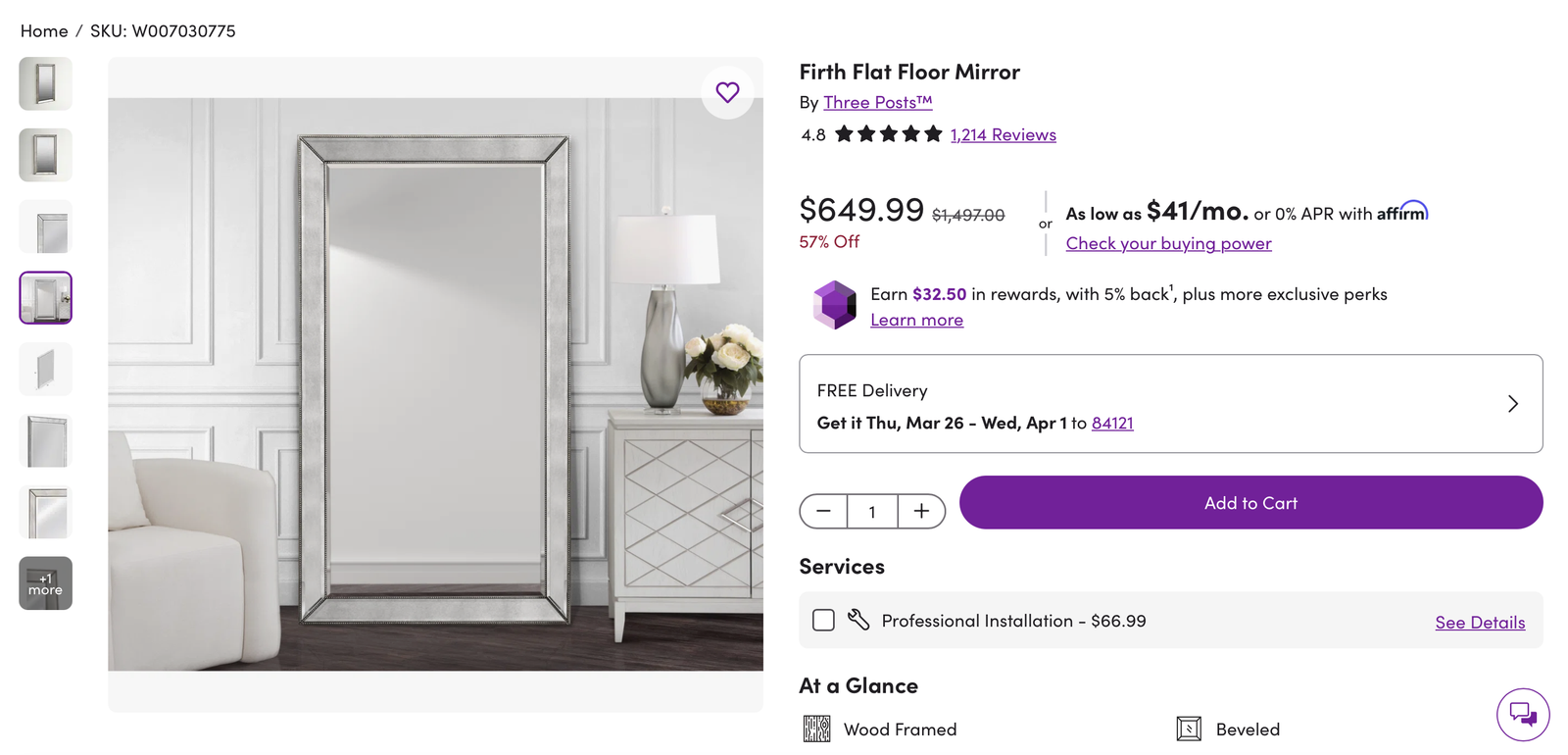 Bought it from Wayfair last year for $650 (see: https://www.wayfair.com/home/pdp/three-posts-firth-modern-contemporary-beveled-beaded-full-length-mirror-w007030775.html)