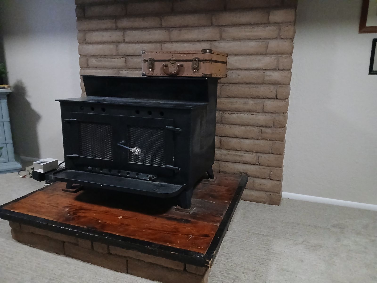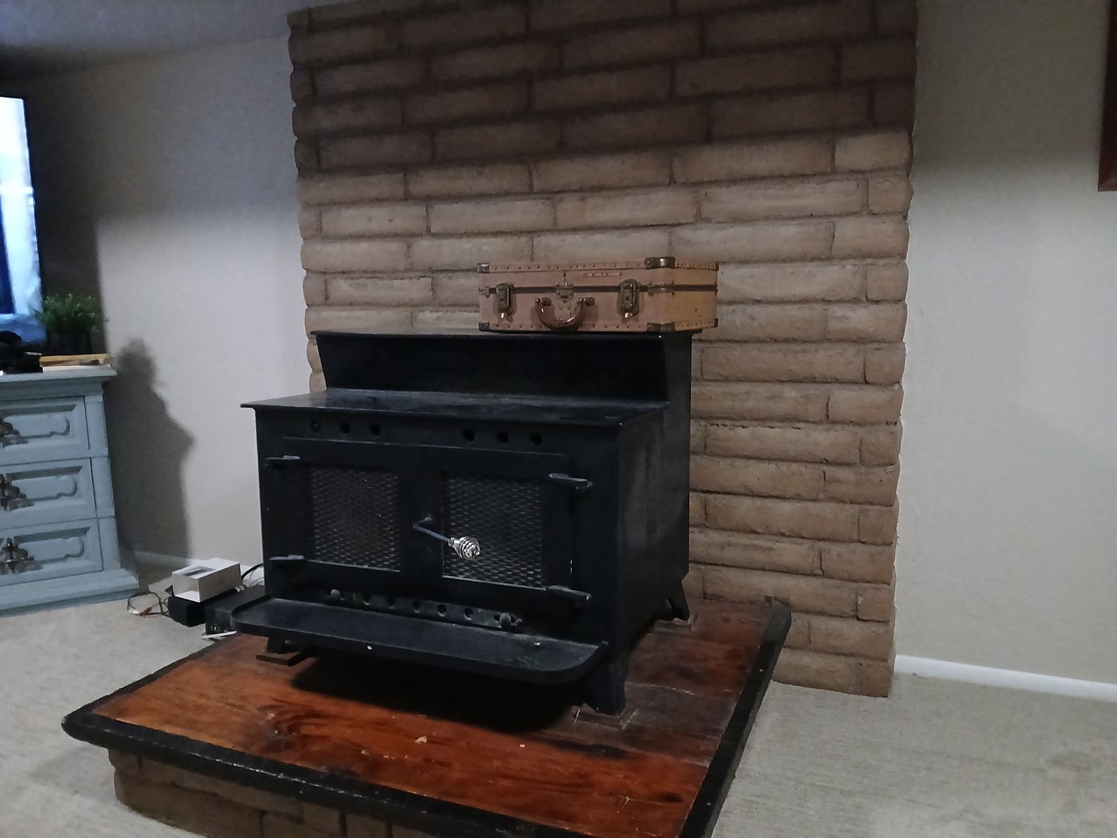 ZelleLarger wood burning stove. Dimensions coming soon. I can't deliver so pick up only.