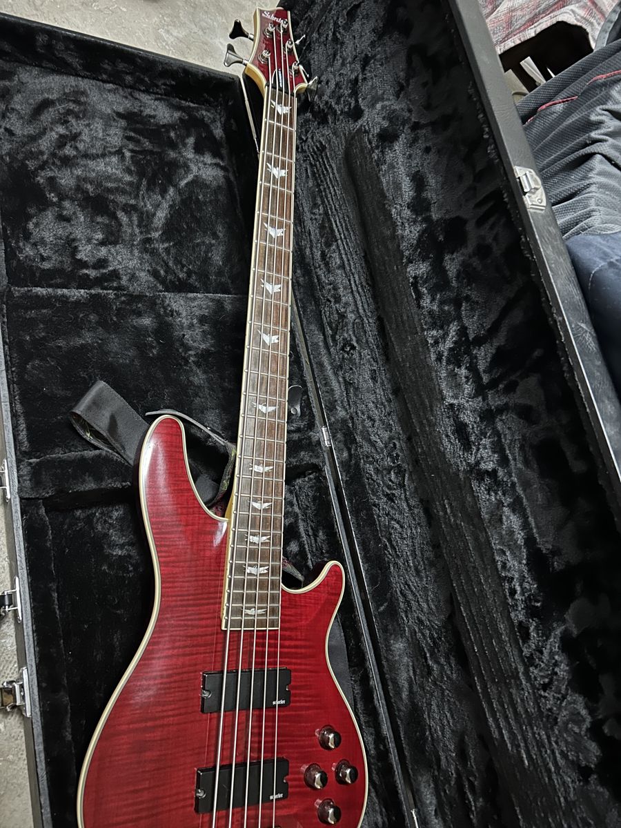 ApplePaySchecter 5-string omen. Brand new condition absolutely no issues aside from a little buckle rash. New string, new set up. Active pick ups.
