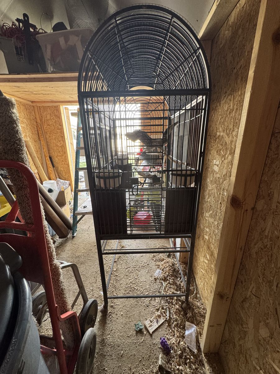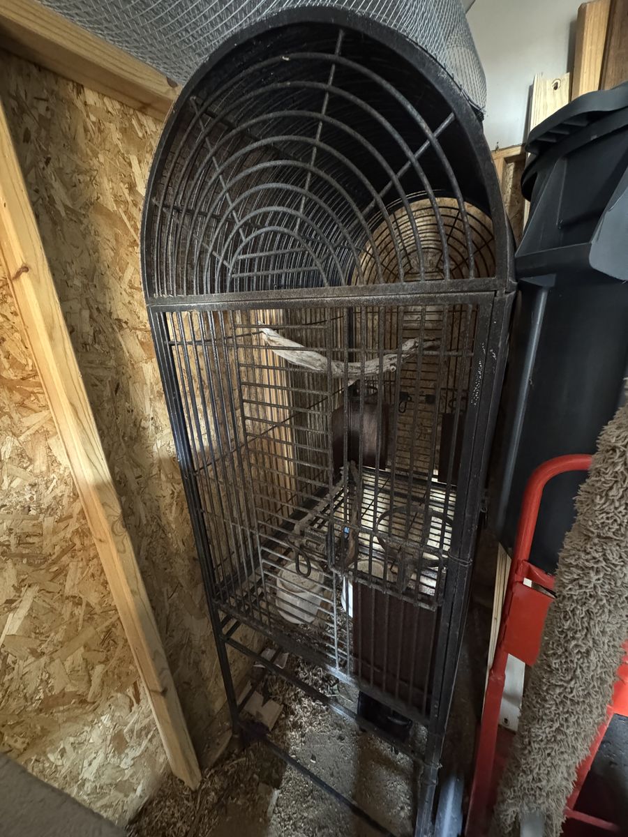 ApplePayMeant for a large bird It’s got a mesh on top to block some sun, I used this as an outside cage for an old bird of mine, there’s no catch tray on the bottom, comes with 3 ceramic bowls