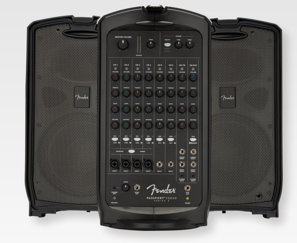Maximize the sonic punch of any large performance with the Passport Venue Series 2 portable sound system. Featuring Bluetooth® audio streaming and XLR ¼" combination jacks for increased connectivity, Passport® Venue Series 2 has full-range speakers, versatile features, friendly front-panel controls and 600 watts of power for strong, clear and reliable Fender sound ideal for larger venues and occasions - including band and DJ gigs; education, sporting and worship events; meetings, seminars and presentations and more.