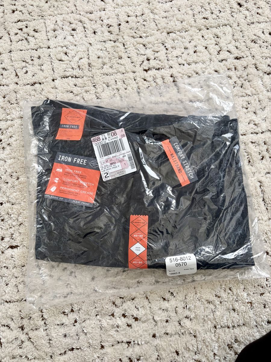 The black dress slacks are classic fit 40” x 30”. Comfort stretch waistband. Asking $25 for the pants.